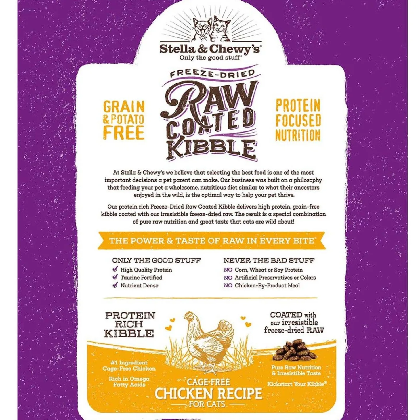 Stella & Chewy’s Raw Coated Cage Free Chicken Recipe is a super-premium, high-protein kibble solutions that are carefully coated with irresistible freeze-dried raw recipe to fuel your cat or kitten’s wild side. Recipes include responsibly sourced proteins, guaranteed probiotics for optimal digestion, and are rich in omega fatty acids for healthy skin and coat.