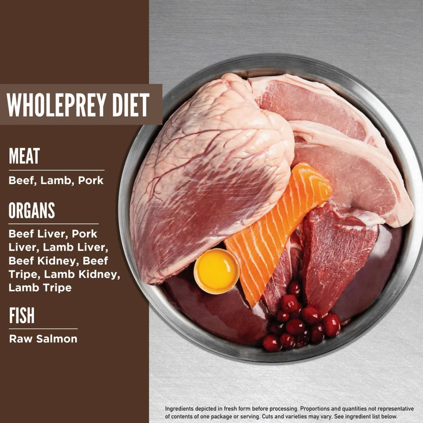 - This authentic Whole Prey diet features the most succulent parts of the prey like meat or fish, organs and bone to mimic what your dogs ancestors consumed in the wild.