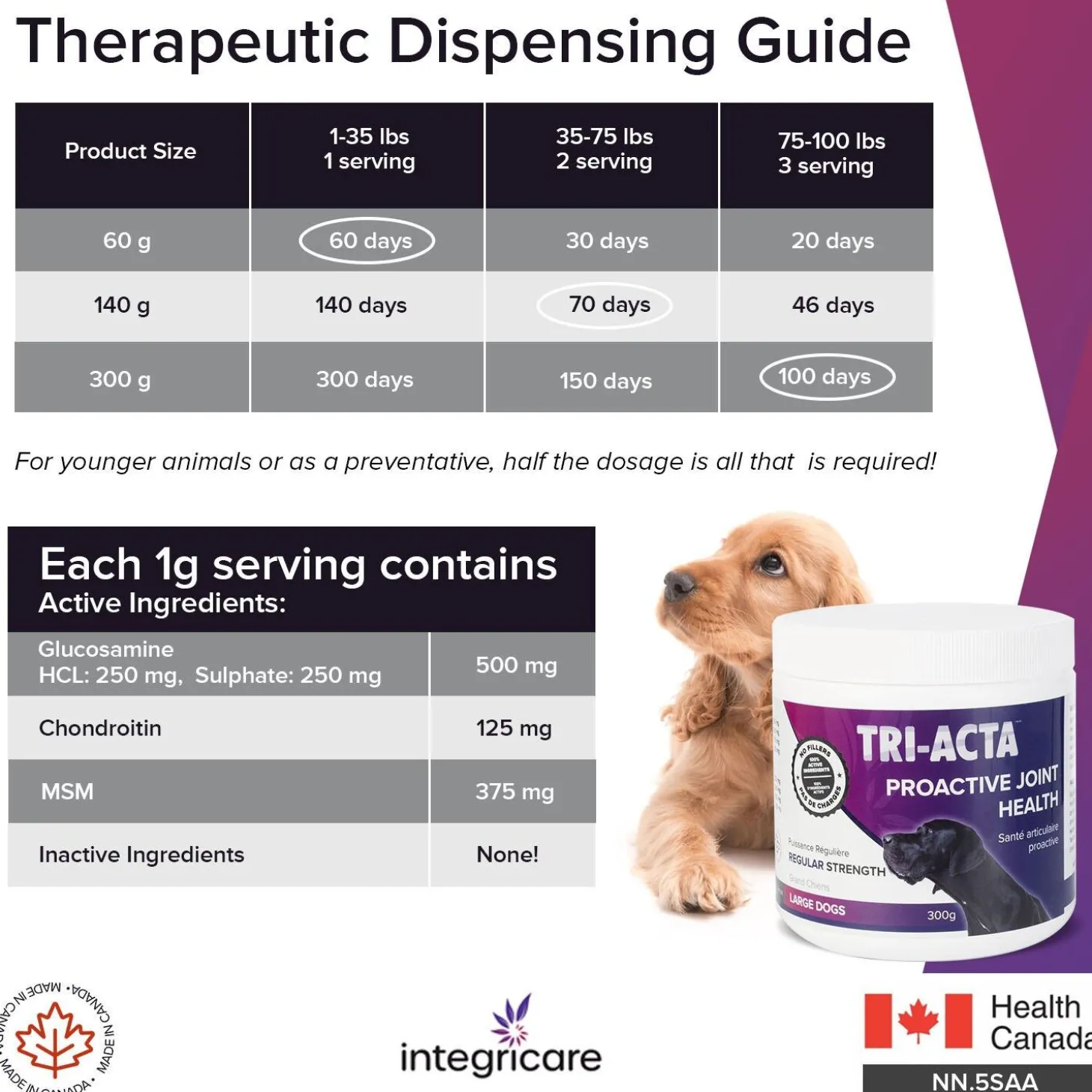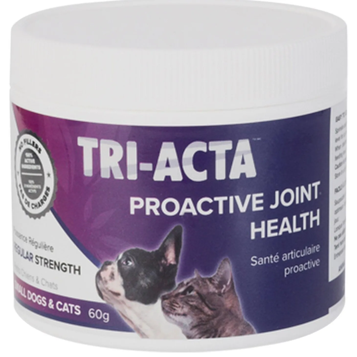 Tri-Acta Regular Strength Proactive Joint Health Supplement is a proactive solution for maintaining your pet’s joint health. This joint supplement does this by combining two key ingredients, glucosamine and chondroitin, which activate alongside MSM (methylsulfonylmethane), a naturally-occurring anti-inflammatory, to promote the generation of new cartilage, muscle, and ligaments in the joint. This synthesis of new cartilage treats the cartilage matrix at the cellular level and allows the body to heal itself. Tri-Acta is used in the treatment of age-related soreness, degenerative joint disease, arthritis, and ailments associated with hip dysplasia, injury, or surgery. It is also recommended as a preventative approach to maintain optimal joint health.