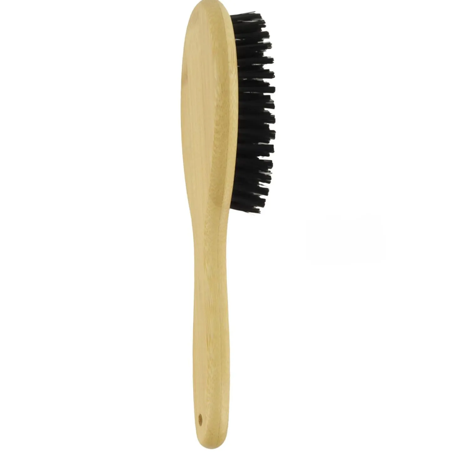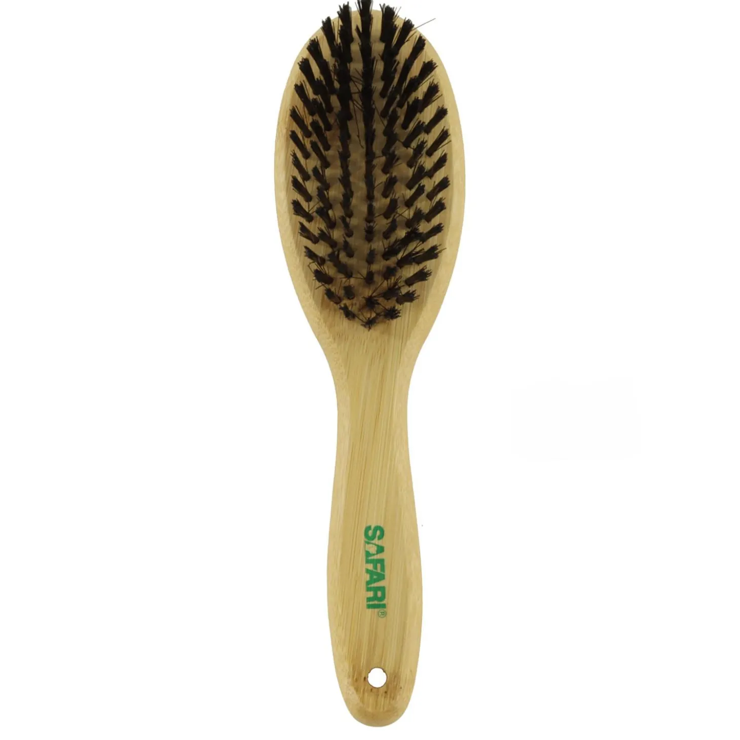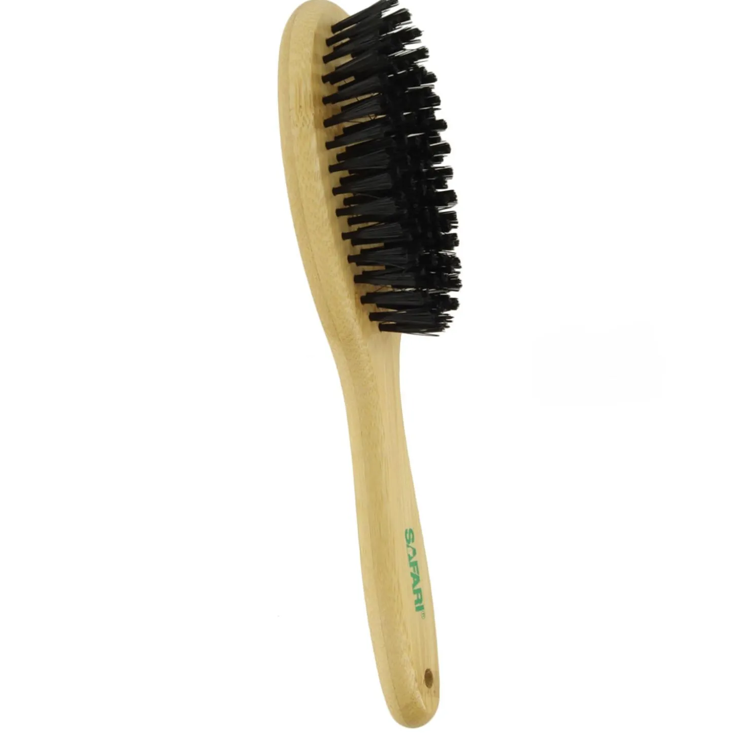 Coastal Pet Products Safari Bristle Dog Brush will help clean and shine your dog’s coat! This brush gently removes dirt and debris from your dog’s hair with its soft bristles. Plus, it distributes natural oils throughout the coat, adding beautiful shine. The brush also provides comfortable gripping with its eco-friendly bamboo handle. The brush is easy to use: Simply angle the brush and use short, quick strokes to remove debris. Then, use long flowing strokes from head to tail to distribute natural oils. Use this bristle brush to keep your dog’s coat clean, soft and shiny!