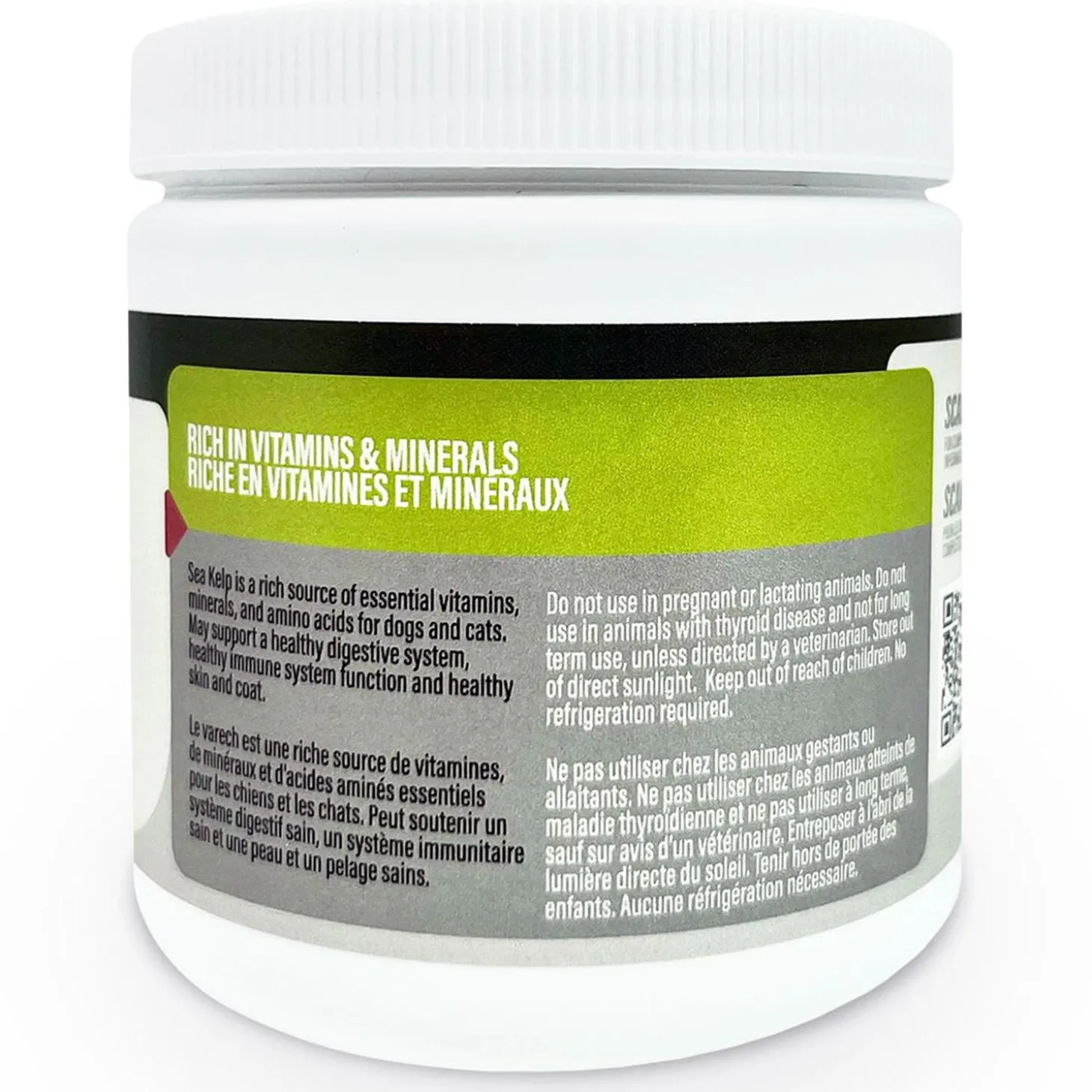 Thrive Sea Kelp Supplement is a 100% natural and organic animal supplement for supporting optimal health. Thrive Kelp Supplement is a complete source of bioavailable minerals, vitamins, and beneficial phytonutrients, and delivers a range of stress-relieving benefits to companion animals. The trace minerals in Thrive Kelp Supplement are essential for proper immune and thyroid function. Thrive Kelp Supplement is an excellent supplement in raw, dehydrated, frozen, and dried foods – for skin and coat health, clearer eyes, and immune response. This product is 100% Canadian and suitable for both dogs and cats.