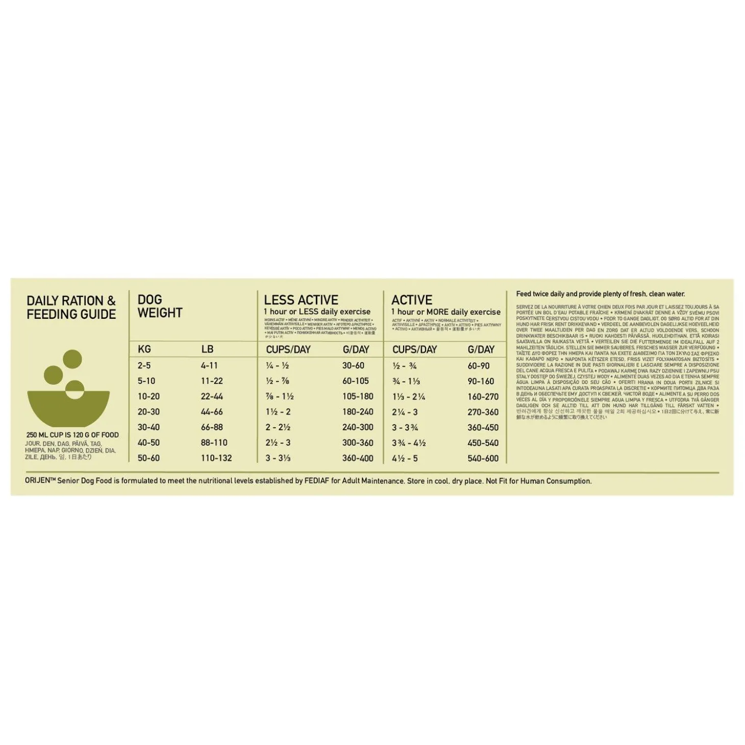 ORIJEN Fresh & Raw Chicken, Turkey & Wild-Caught Fish Senior Dog Food is perfect for your senior dog as it has specific nutritional needs in order to help them stay healthy and support lean muscle mass and weight maintenance. A diet rich in protein from whole animal ingredients provides your dog with the nutrients they need for peak health. Two-thirds of the animal ingredients are FRESH or RAW, for a concentrated source of protein. With meat, organs, cartilage, and bone from fresh free-run chicken and turkey, wild-caught fish, and cage-free eggs, ORIJEN Senior nourishes your beloved companion completely while offering them a flavour that they’ll love.