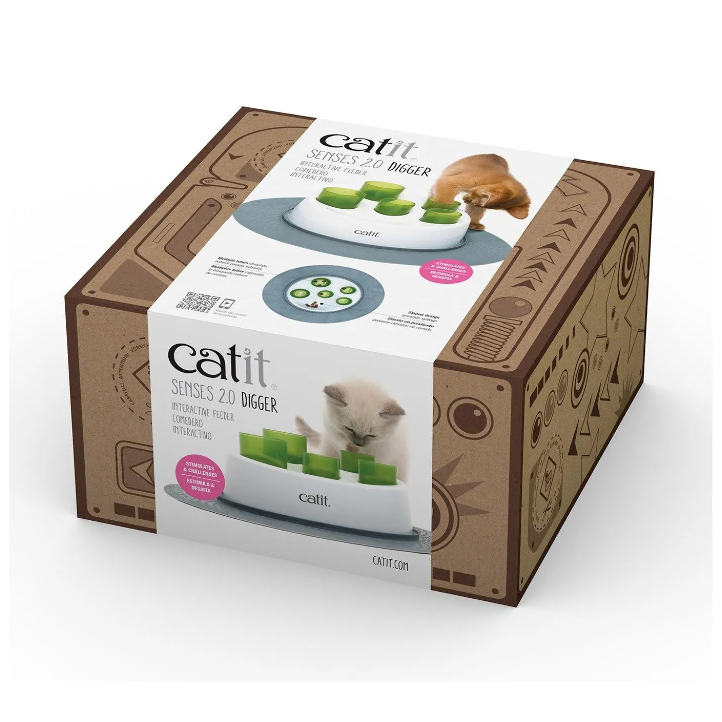 Catit Senses 2.0 Digger is the perfect way to hide kibble or treats with its multiple tubes which play on a cat’s instincts to sniff and paw out smaller portions of food. This stimulates activity and reduces binge eating. The Catit Senses 2.0 Digger includes 3 short, narrow tubes, 2 long, wide tubes, a stable base and a rubber mat to lock the product in place. The tubes have rounded ends, making them easy to use and clean.