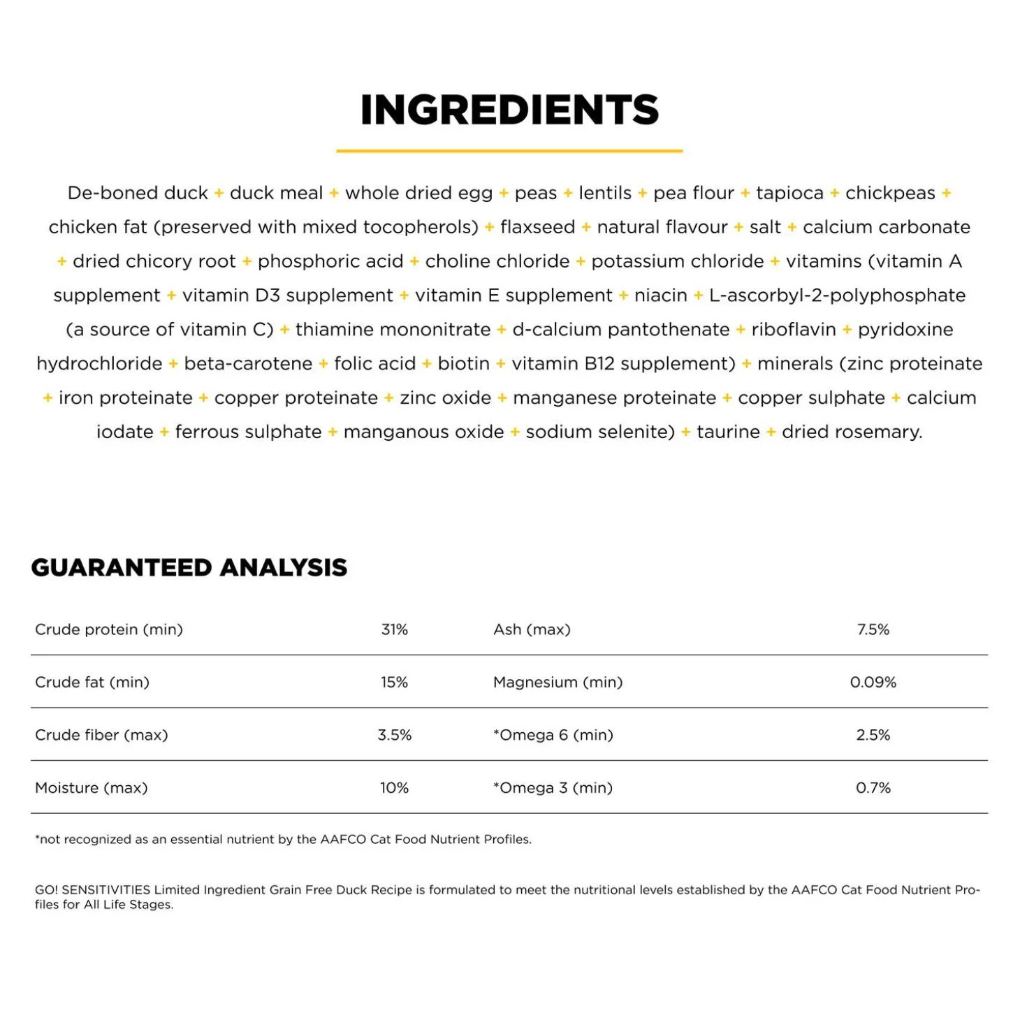 - Limited ingredients for sensitive cats: Featuring premium quality duck & whole eggs as the limited sources of animal protein with minimal additional ingredients, for a nourishing meal that’s gentle on the stomach.