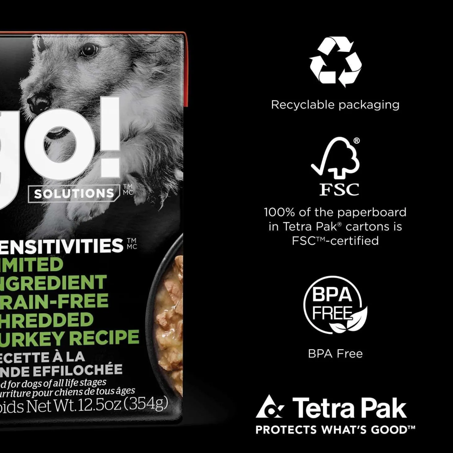 Go! Solutions Sensitivities Limited Ingredient Grain-Free Shredded Turkey Recipe Dog Food is a delicious, gentle meal for dogs specially crafted for sensitive stomachs. Formulated in Ontario, Canada, this tasty wet dog food is designed to provide a healthy and satisfying meal while catering to your pup’s dietary needs.