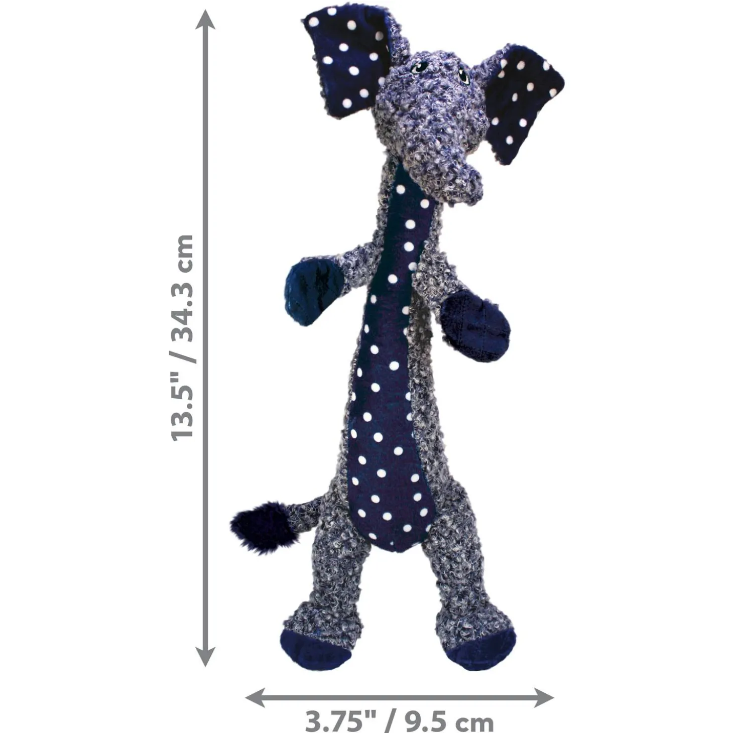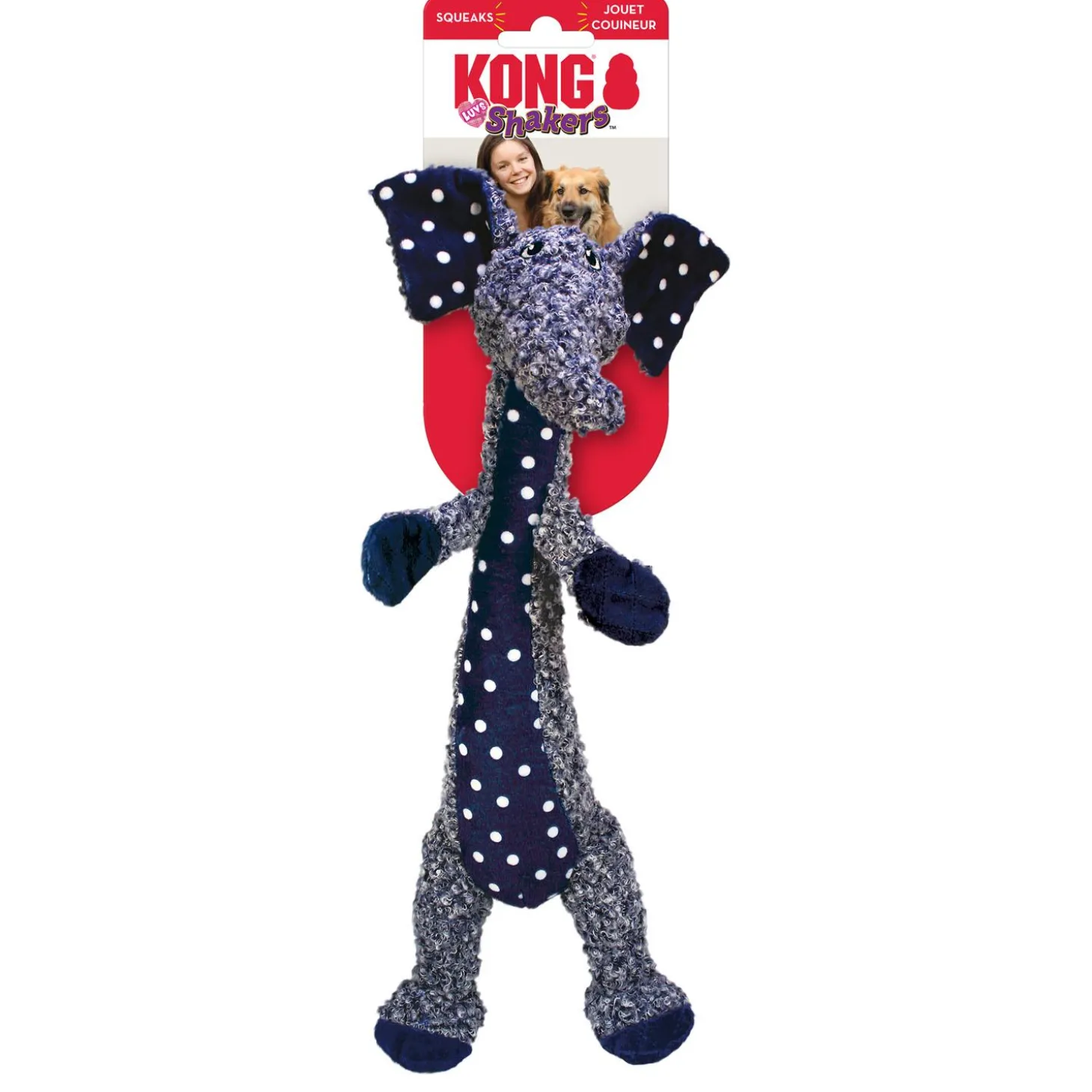 KONG Shakers Luvs Elephant Dog Toy has a unique extended body with arms wide open for frolicking rounds of tug, toss and fetch. Its extended body is long on fun making it great for shaking and flopping while a low-toned squeaker sparks natural instincts and prolongs playtime.