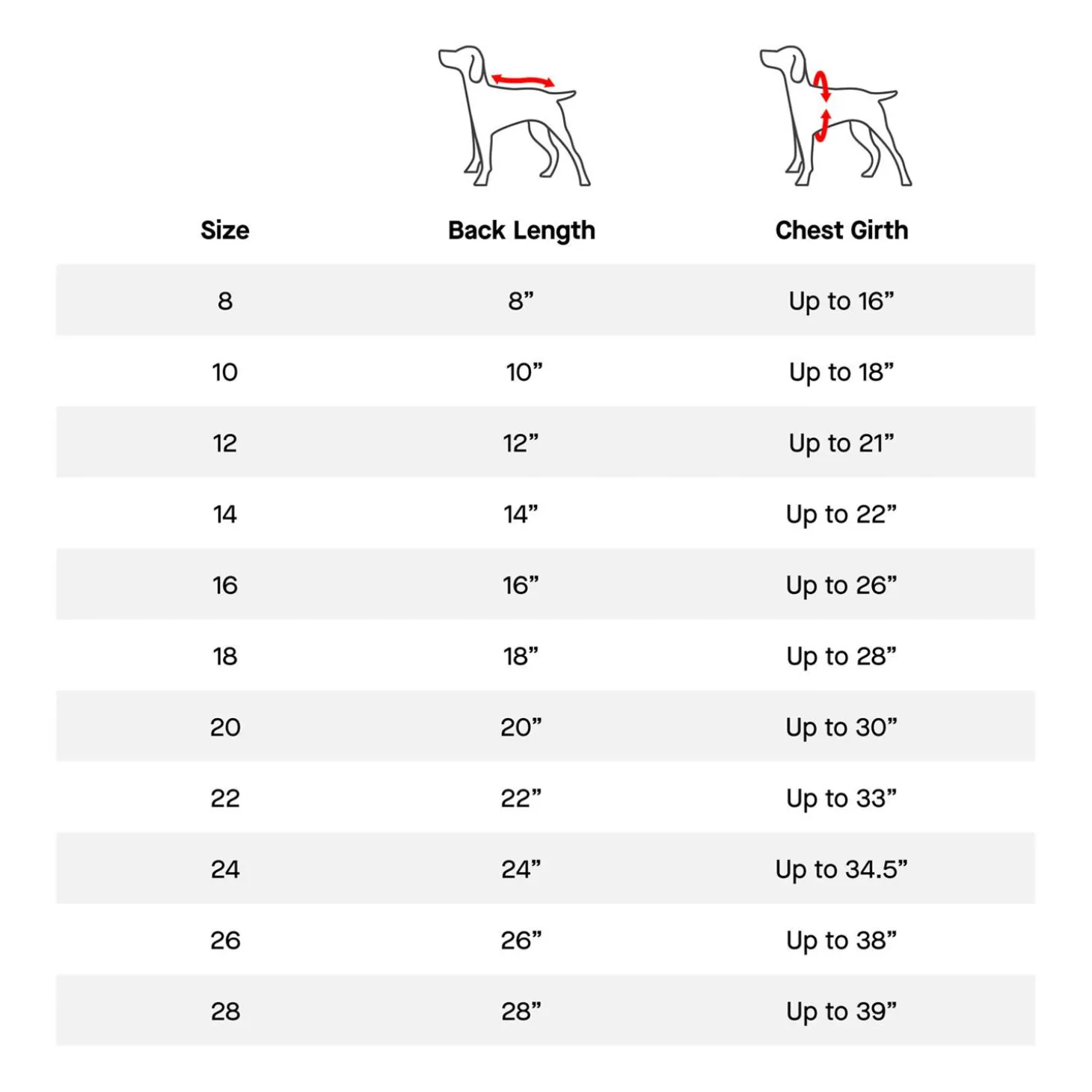 | Size | Back Length | Chest Girth |