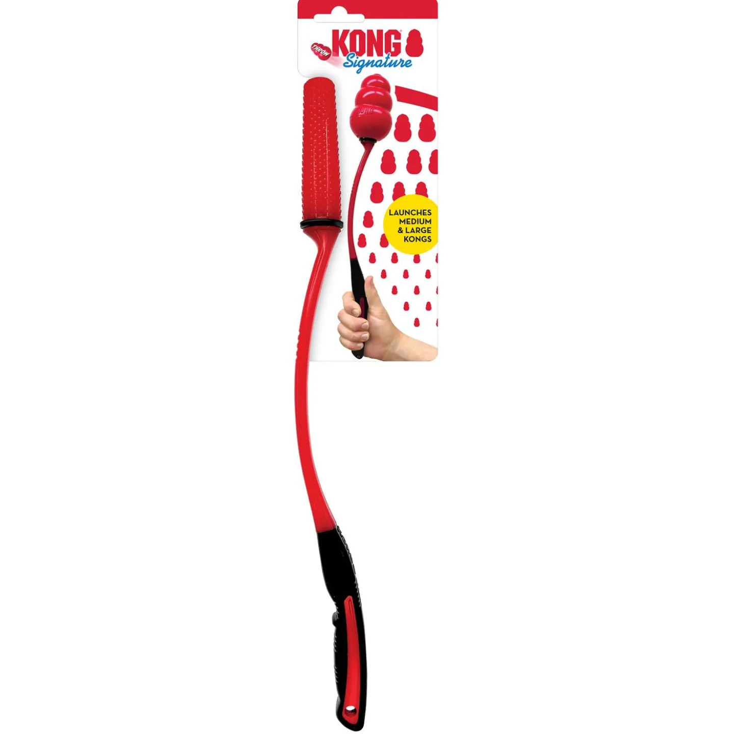 KONG Signature Throw Dog Toy has a special shaped scoop and holds medium and large KONG Classics for easy, long-distance fetching for lots of healthy, instinct-satisfying exercise. Years before they were ever stuffed with treats, KONG delighted dogs purely with their dynamic bounce and irresistibly erratic rebound action. Durable construction, padded grip, textured KONG Kupper and ergonomic shape make hands-free pickup a breeze for long-lasting fetching fun.