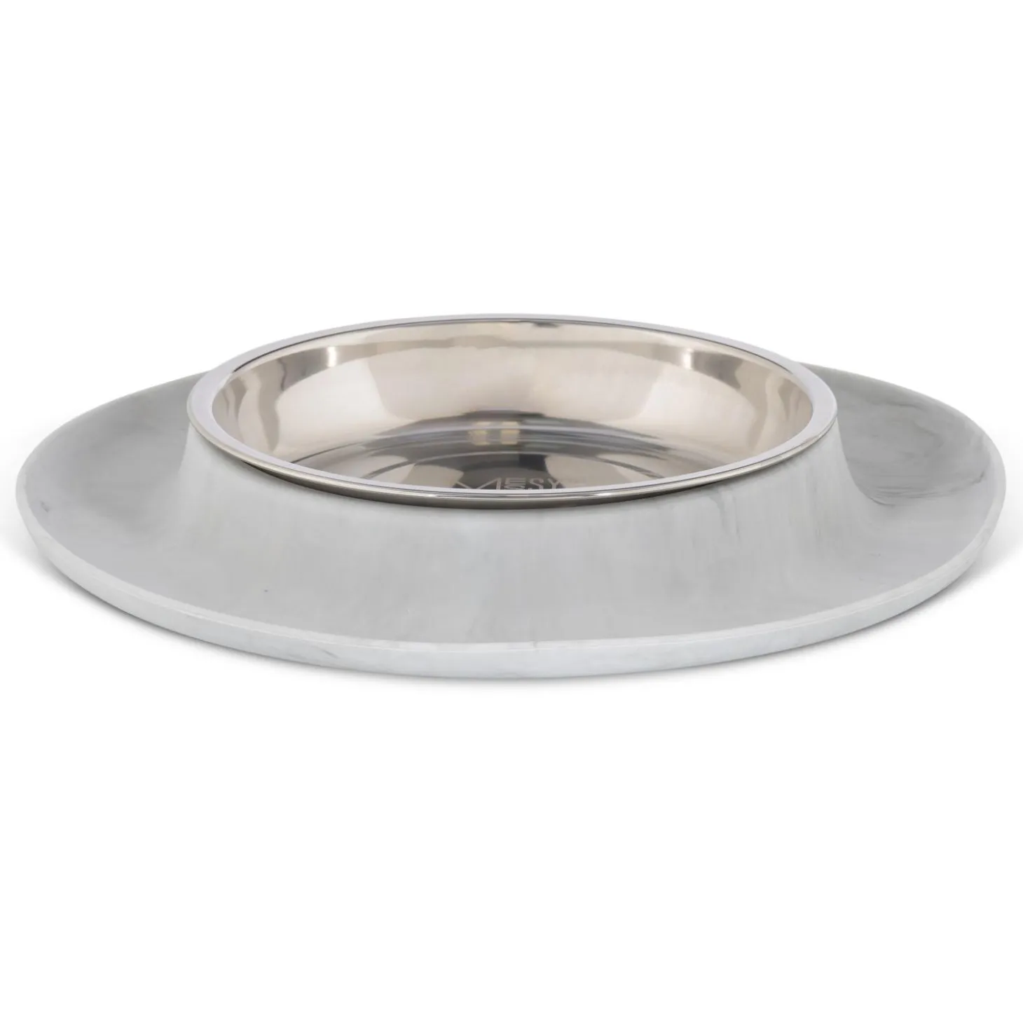 Messy Cats Silicone Marble Feeder with Stainless Saucer Shaped Bowl is designed to make sure you can feed your cat and not your floor. The non-slip silicone base prevents damage to your floors and holds the stainless steel bowl in place for your cat. Contain any further messes with the wide lip and raised edge border. The saucer shaped stainless dish is wide with low side to help reduce whisker fatigue and irritation while eating or drinking. The ‘marble look’ silicone base provides grip to keep the bowl in place as well as a raised edge to help contain the spills. ideal for advanced food prep, travel and preservation.