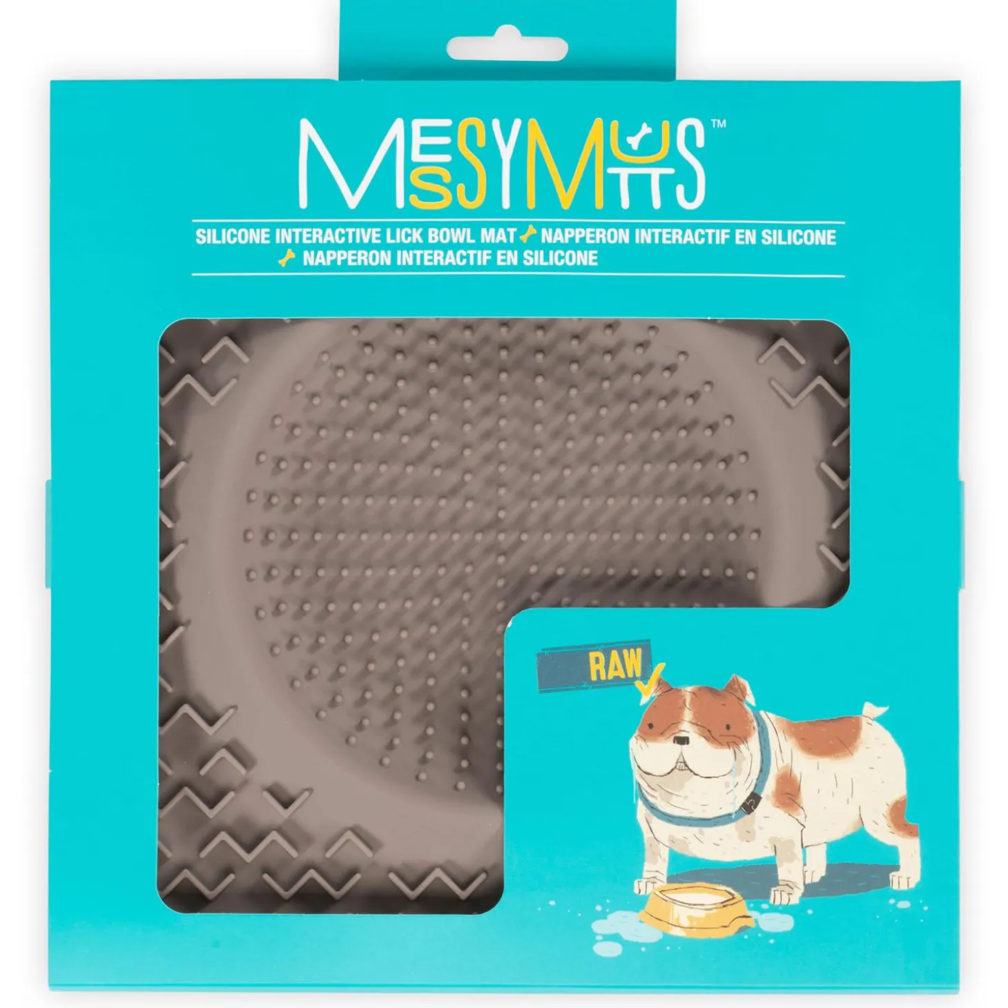 Messy Mutts Silicone Therapeutic Grey Licking Bowl Mat is designed to stimulate your mutt while slowing their intake. Let your mutt lap up those healthy soft treats, supplements or food. Just spread your mutt’s favourite snack over the surface or easily freeze liquids (like milks or broths) to prolong enjoyment