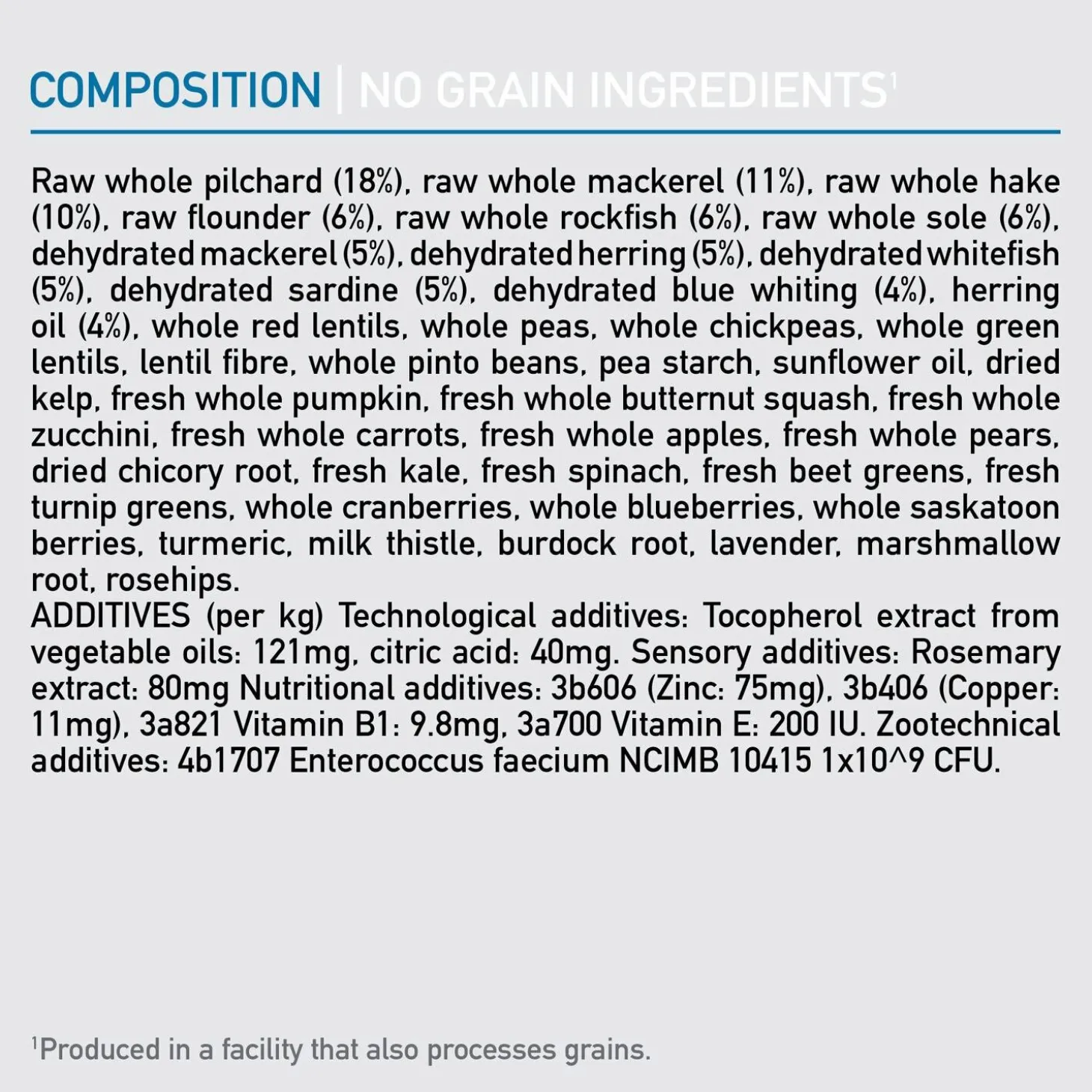 ORIJEN Six Fish Wild-Caught Pilchard, Mackerel, Hake, Flounder, Rockfish & Sole Dog Food is a diet rich in protein and balanced in nutrients to help your dog stay healthy and happy. Omega fatty acids can contribute to skin and coat health, and foods that are rich in fish ingredients offer your dog complete nutrition with a mouth-watering taste. Two-thirds of the fish ingredients are FRESH or RAW, for a concentrated source of protein. ORIJEN Six Fish is brimming with meat, organs, and bone from whole, wild-caught fish, so your dog is getting everything they need in order to thrive.