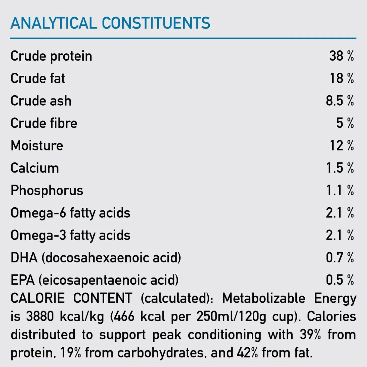 - 38% richly nourishing protein and Omega fatty acids support peak conditioning and promote skin and coat health