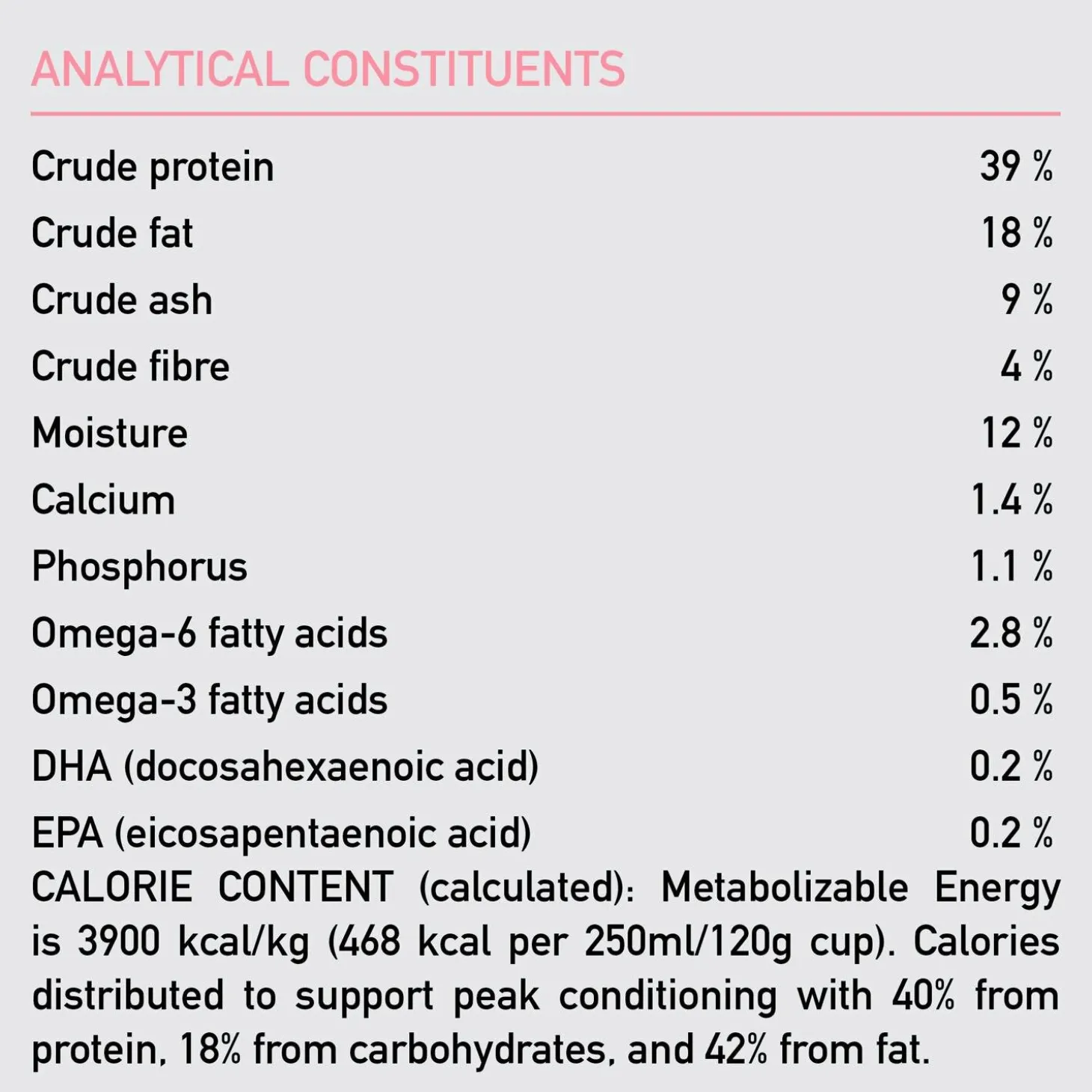 - Protein-rich to support higher energy needs and balanced nutrition to help maintain a healthy weight
