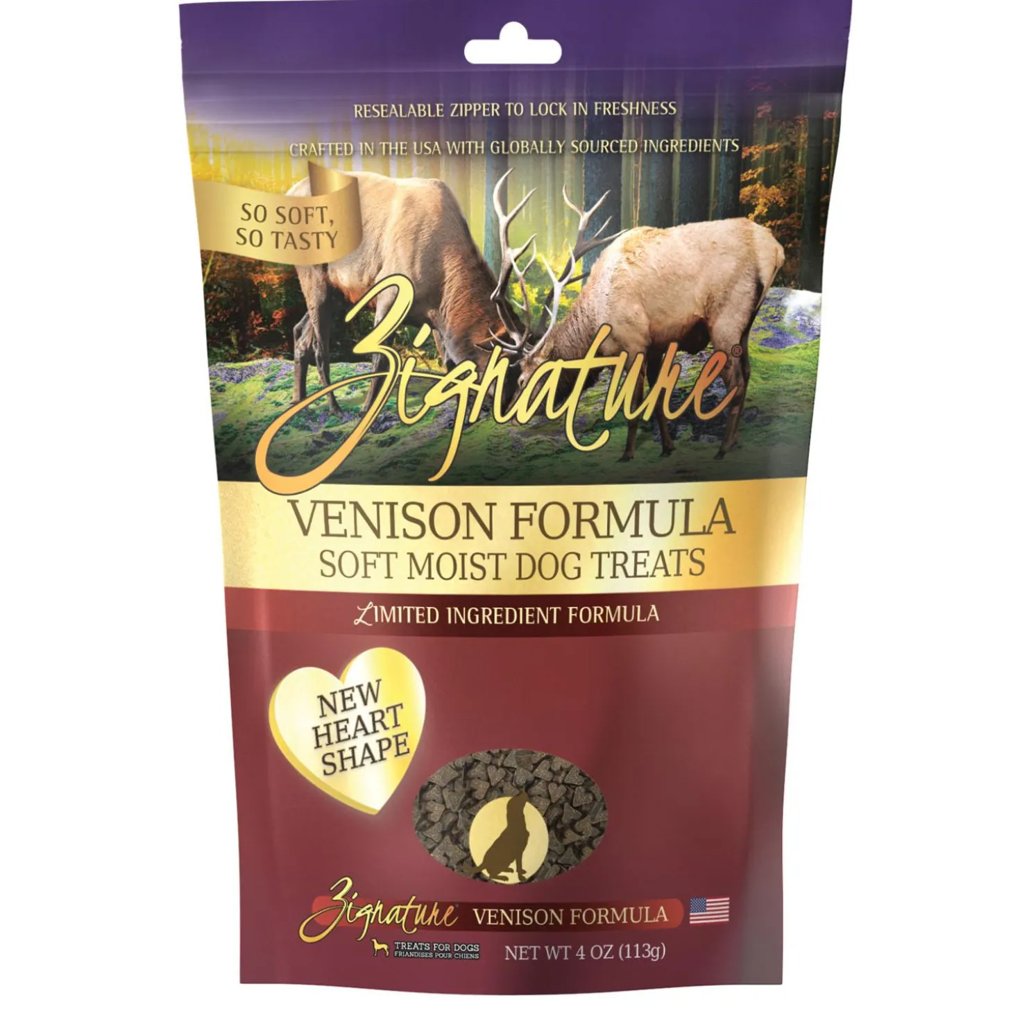 Zignature Soft Moist Venison Formula Dog Treats are formulated with the same limited ingredient philosophy as the dry and canned foods. Delivering a high-quality, delicious treat for your canine companion. By excluding ingredients your dogs do not need, Zignature is able to bring you a treat that is simple yet so tasty. To bring out the best in dogs, Zignature is committed to providing animal or fish protein as the first ingredient as protein is essential for a healthy diet. Zignature Soft Moist Dog Treats are made with animal or fish protein first, followed by a simple list of other wholesome ingredients.