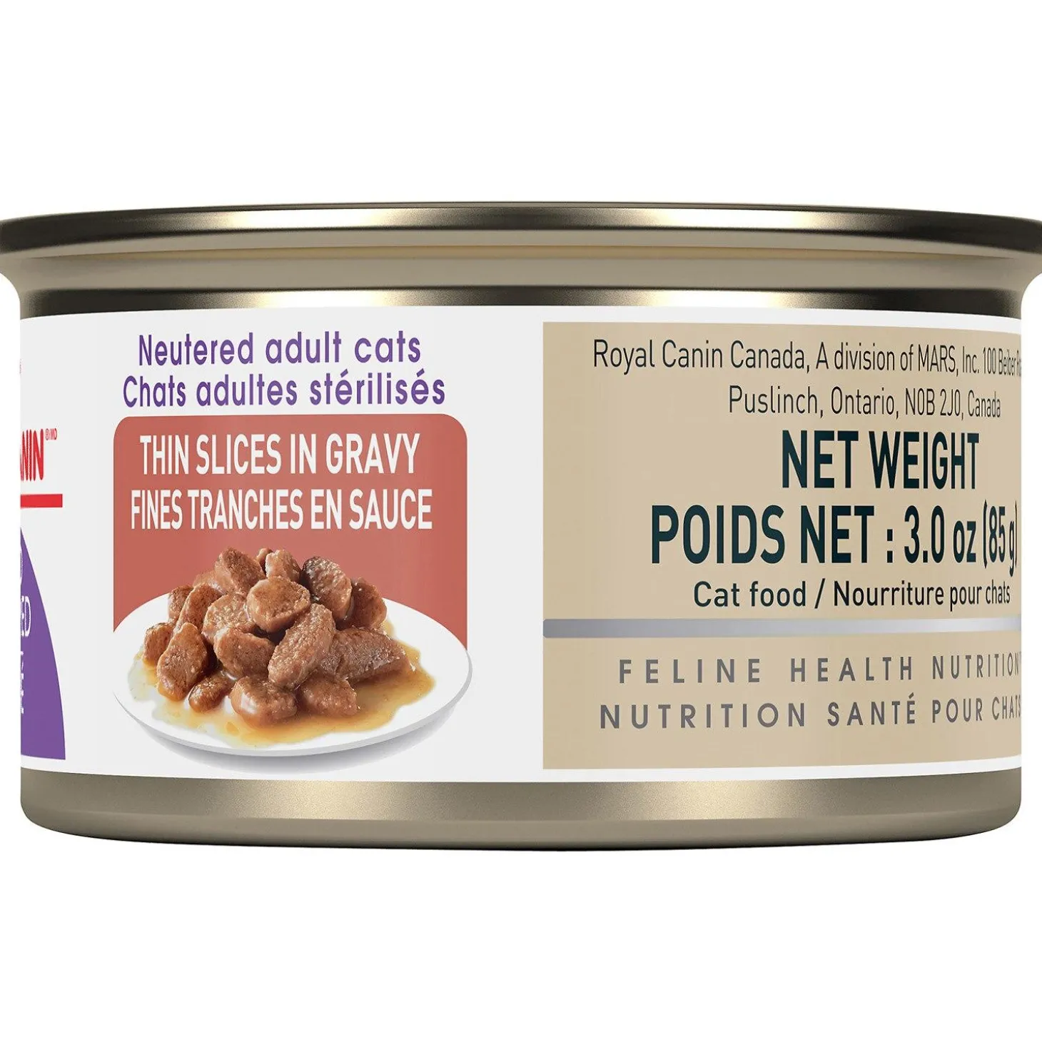 After getting spayed or neutered, a cats energy requirements drop by up to 30%, while at the same time, a cat may consume up to 20% more food. Royal Canin Spayed/Neutered Thin Slices In Gravy Cat Food is for spayed or neutered cats prone to weight gain from 1 to 7 years of age.