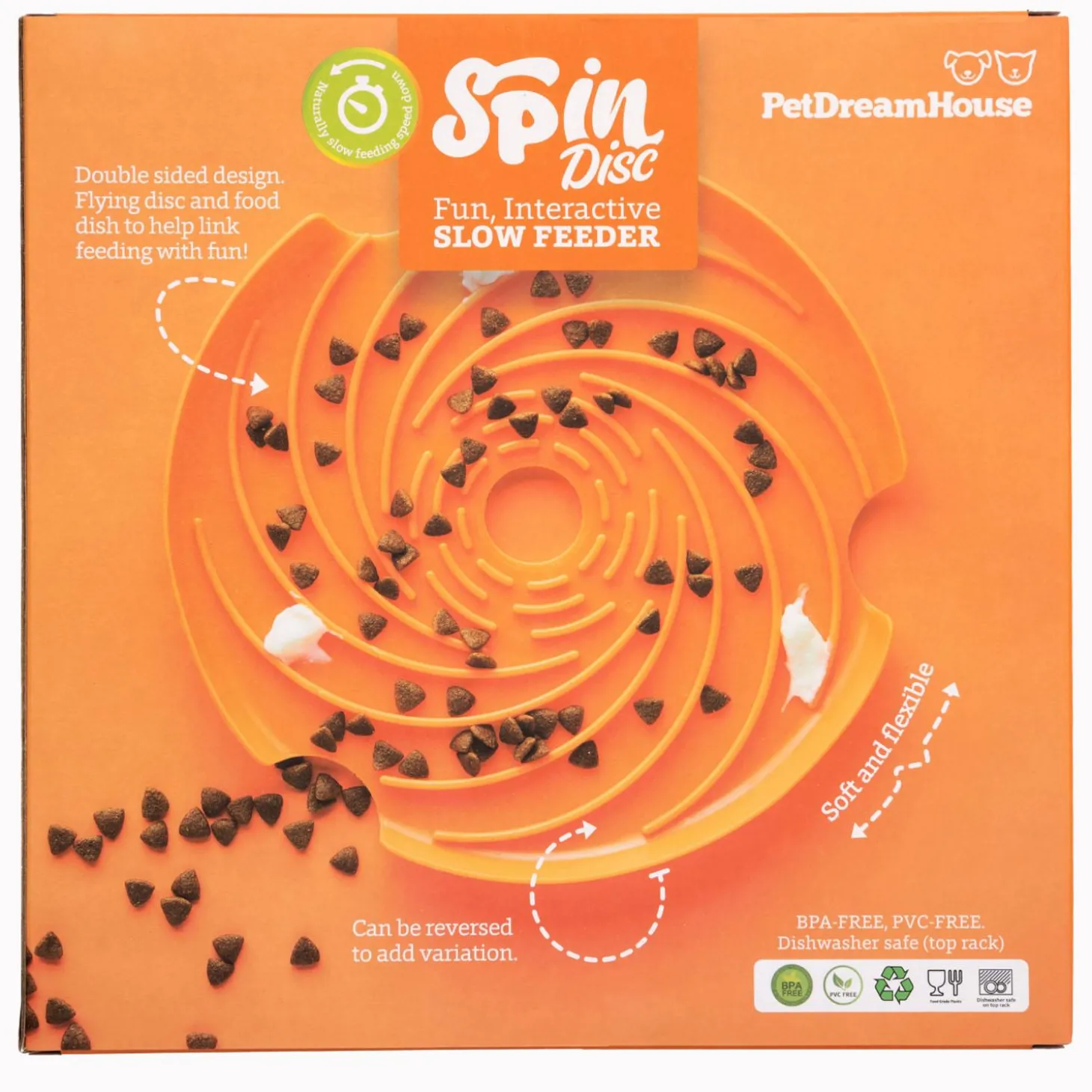 PetDreamHouse Spin Accessories Medium Level Orange Flying Disc Lick Mat can transform from a practical feeding accessory to an exciting toy. The PetDreamHouse Spin Disc doubles as a frisbee or lick mat on the go. Its lightweight yet sturdy construction ensures hours of fetching fun, promoting active play and controlled eating habits. Versatile in use, it’s compatible with PetDreamHouse Spin Interactive Slow Feeder bowls or can be used as a stand-alone item.