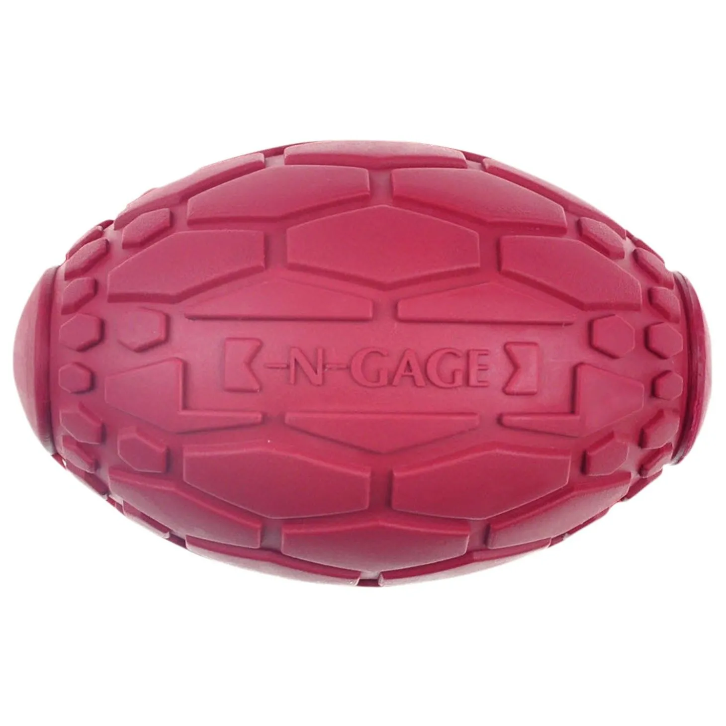N-Gage Squeaker Football in Orange is a riff on the classic American football, but for dogs. It’s made from natural rubber with just the right amount of bounce, hardness and texture. Natural rubber that is durable enough for hard play, yet flexible enough for high bounces.