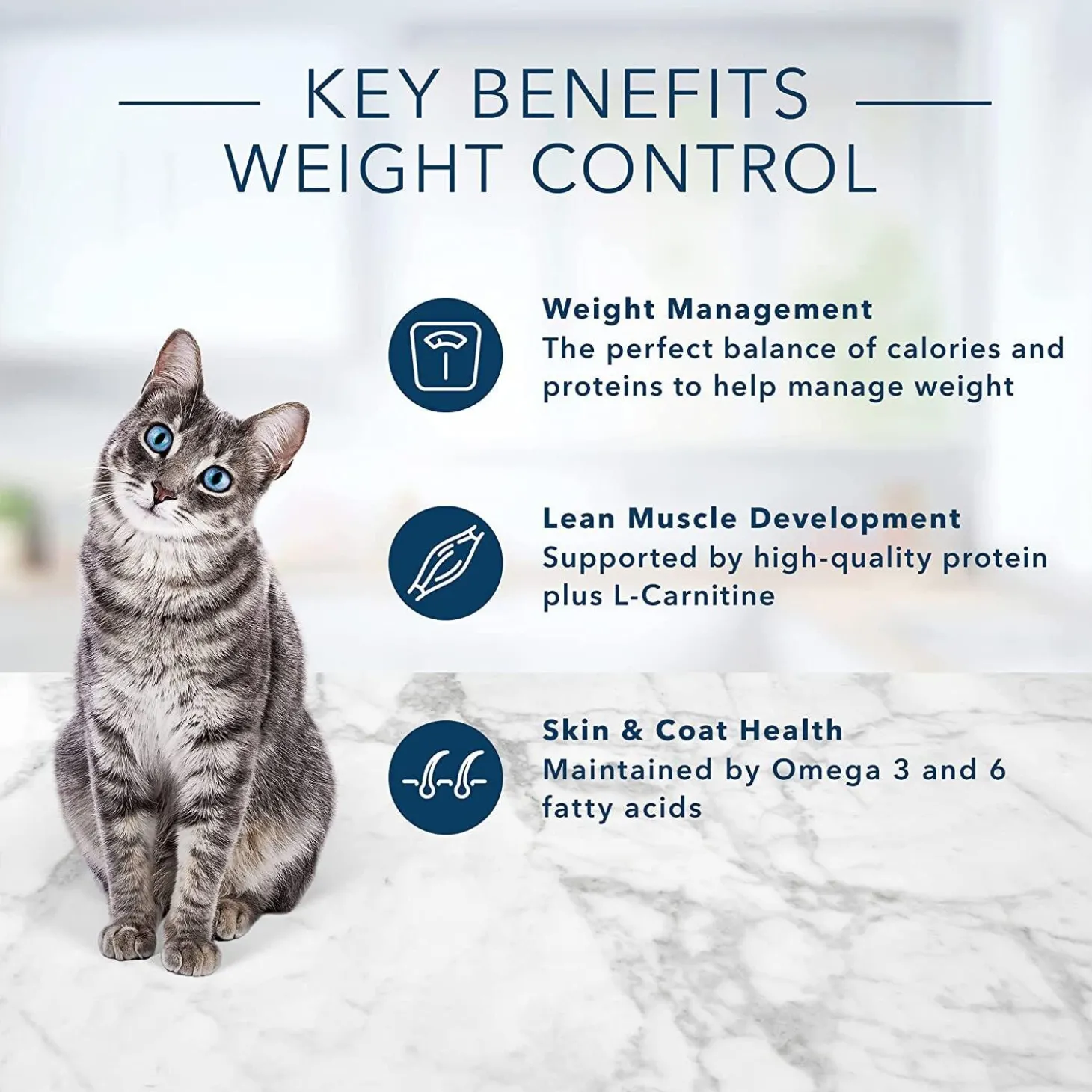 - FOR WEIGHT MANAGEMENT: Our weight control cat food is made with an optimal blend of protein and calories to help your cat achieve and maintain an ideal body weight; Plus, it contains omega 3 & 6 fatty acids to promote a shiny coat and healthy skin