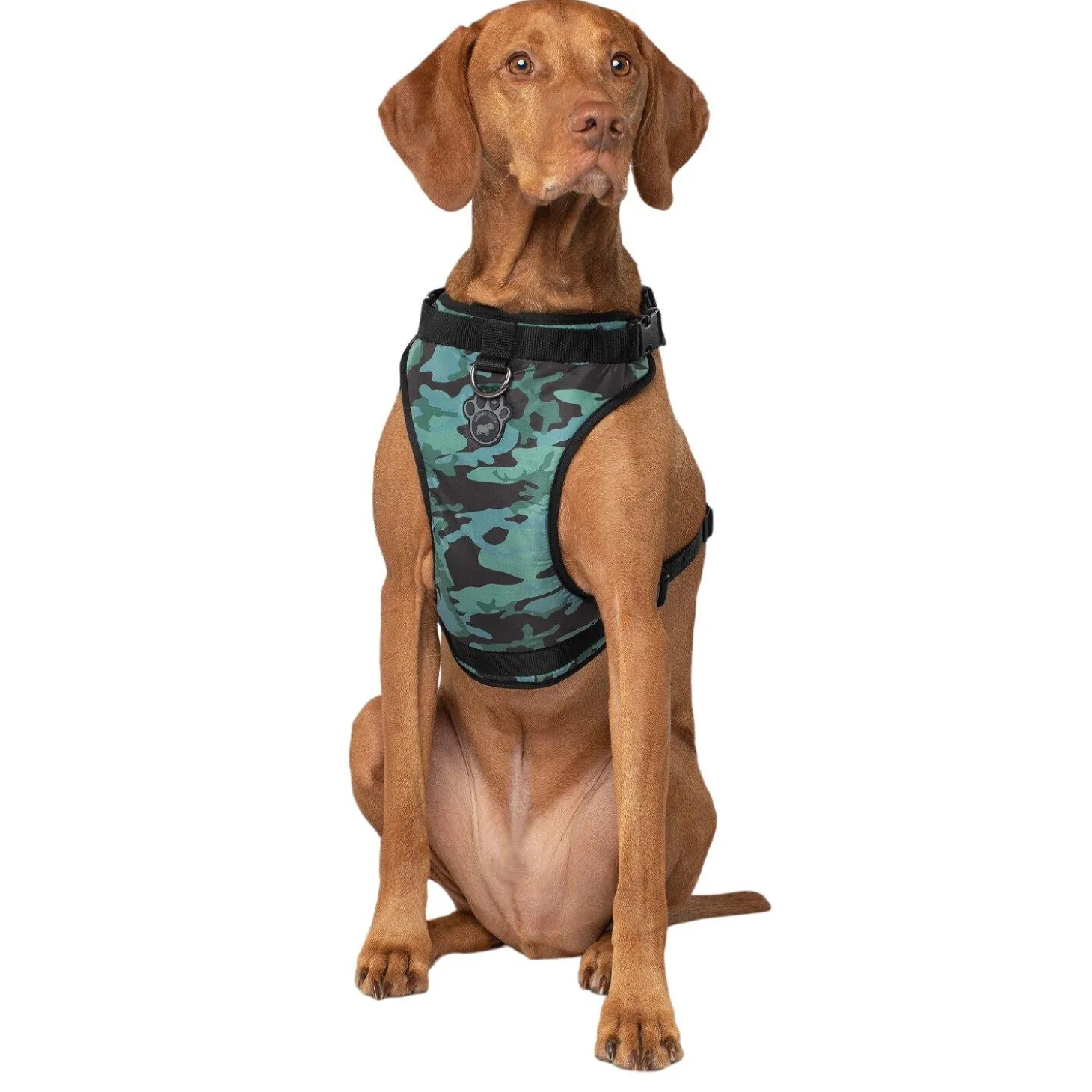 Canada Pooch The Everything Water-Resistant Harness in Camo is everything your pooch needs in one comfortable and functional no-pull harness.