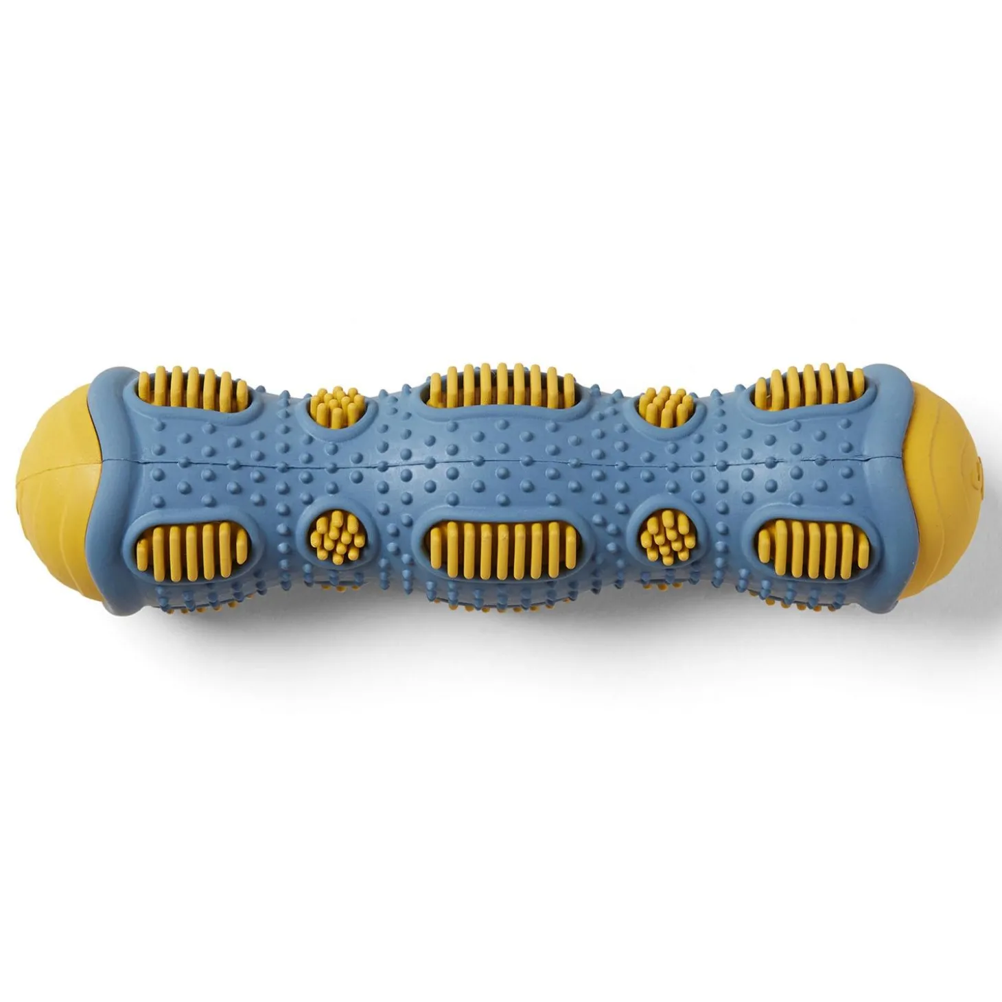 JUMP! Toothbrush Stick Dog Toy is a fun multi-tasking addition to your dogs toy rotation. Different textures and soft rubber bristles help tackle plaque and tartar buildup on your dogs teeth while inner crinkles make for the most satisfying of chews.