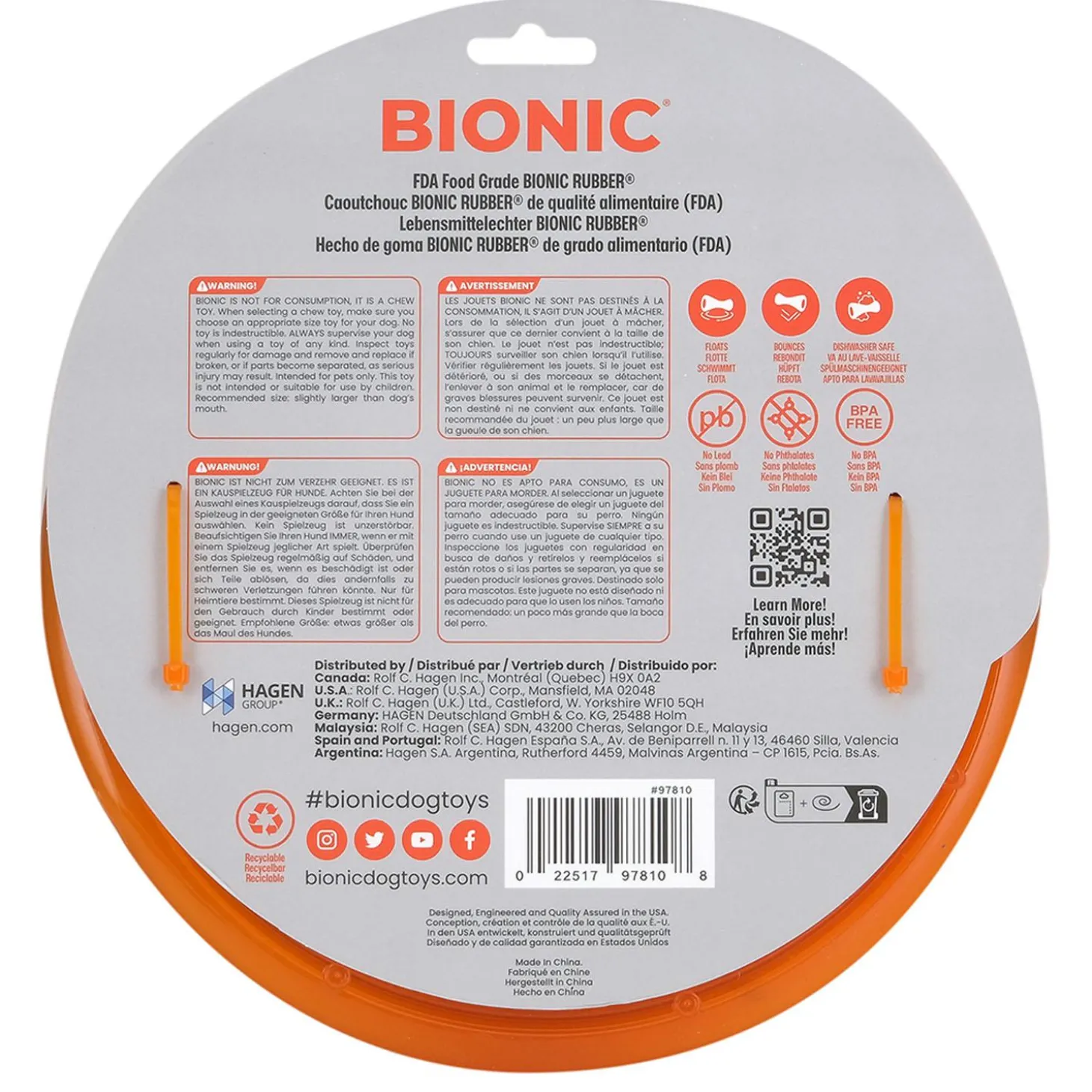 BIONIC Toss-N-Tug Ring Dog Toy is one of the most popular products, is the ultimate two-in-one dog toy! This durable ring sports high-visibility BIONIC orange colour and floats in water to take fetching and fun anywhere! The Toss-N-Tug stands up to hours of tossing, tugging and tail wagging fun.