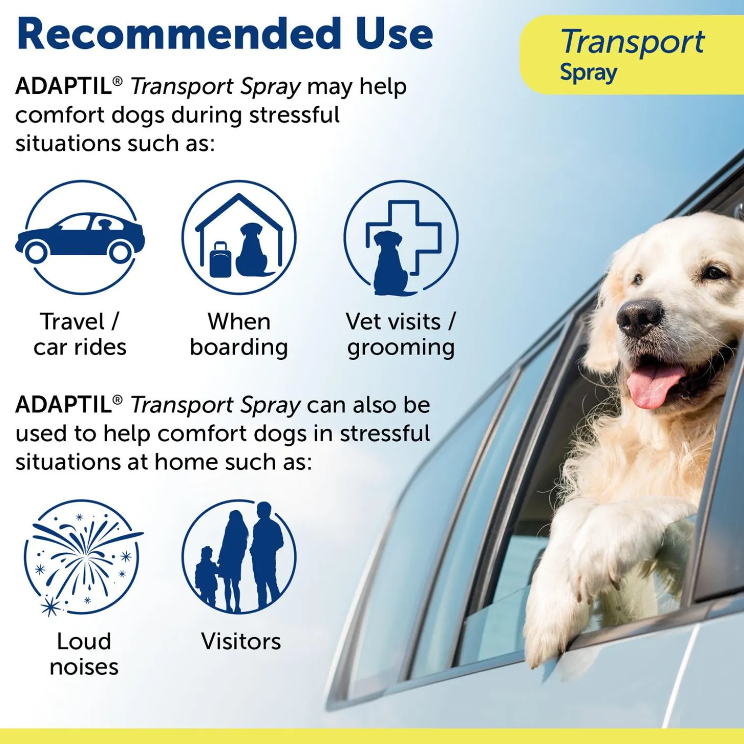 ADAPTIL Transport Spray can help comfort your dog at home and on-the-go! This spray is clinically proven to help improve your dog’s well-being, with a hassle-free setup and backed by decades of expertise.