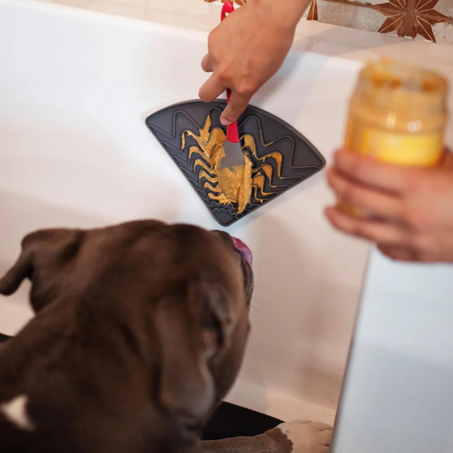 - Three suction cups help secure this mat to the floor, wall or even the tub! Just spread your dogs favourite soft treat and bake, freeze or just serve. Perfect for delivering supplements, milks, broths or just plain peanut butter and yogurt while prolonging their enjoyment