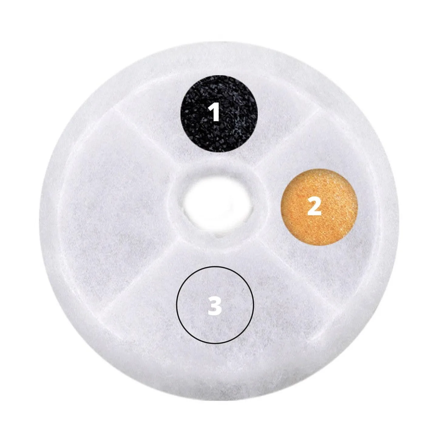 Catit Triple Action Fountain Filters are not designed to cure any disease or illness, however these filters do help remove bacteria and chlorine odours and filter out debris. The filters help soften the minerals like magnesium and calcium in the tap water to help prevent urinary tract diseases. The Catit Triple Action Fountain Filters are suitable for the Catit 2.0 Flower Fountain (43742W) and the Catit Design Cat Drinking Fountain (55600).