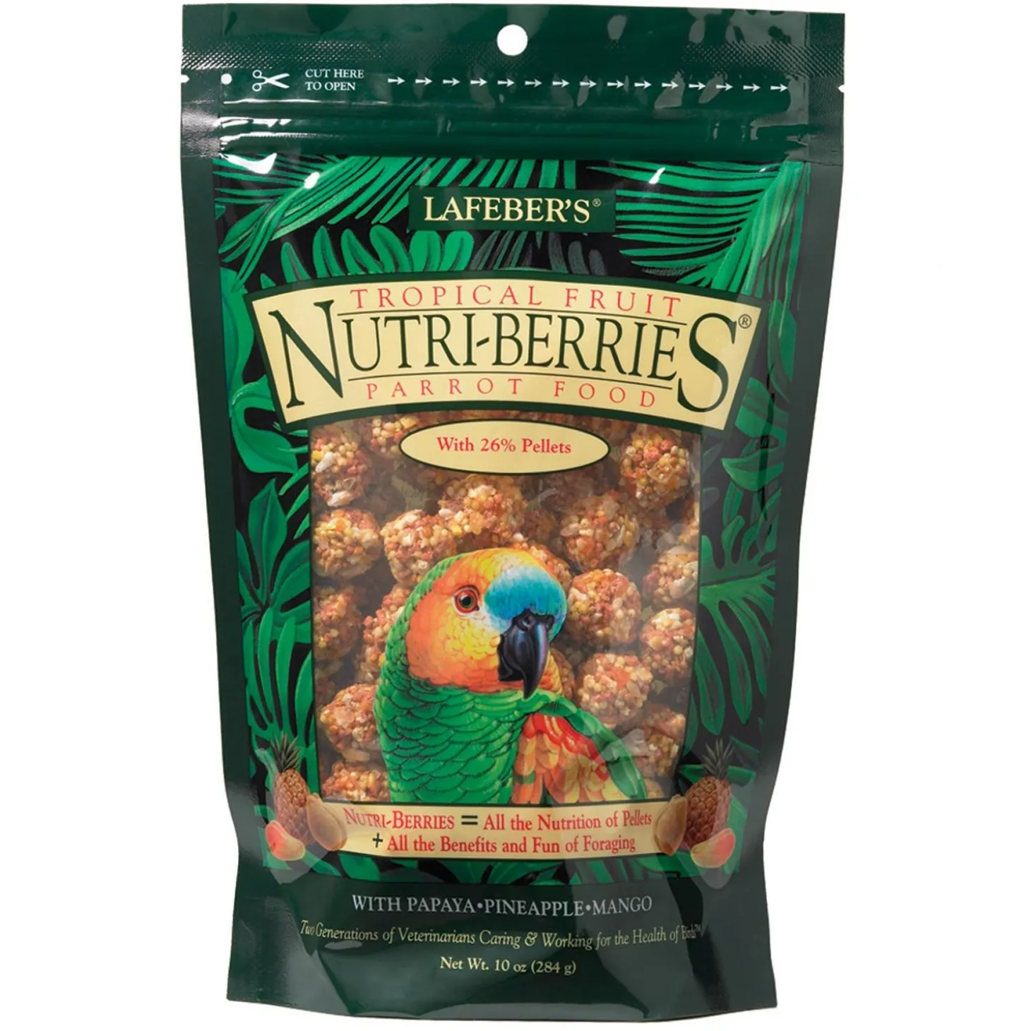 Lafeber Tropical Fruit Nutri-Berries for Parrots offers all the nutrition of pellets, plus all the benefits and fun of foraging. Tropical Fruit Nutri-Berries combine whole seeds and grains with pieces of real pineapple, papaya and mango together in berry-shaped pieces birds love! The Lafeber Company balanced the omega 3 & 6 fatty acids which help to strengthen the immune system. They also use chelated minerals for better absorption, stabilized vitamins for better longevity, and naturally preserve and flavour our foods. These recipes are tested by an independent lab to insure our strict quality standards are met.