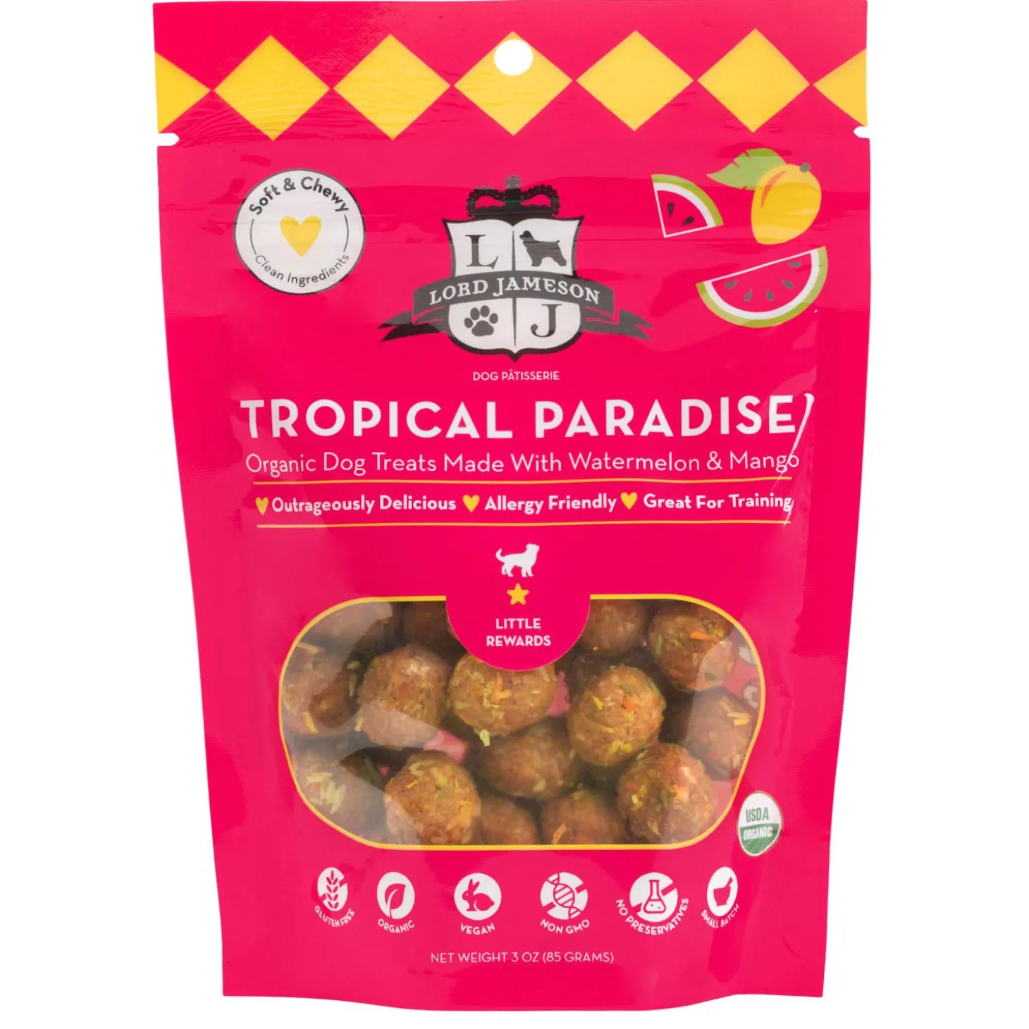 Lord Jameson Tropical Paradise Dog Treats is a unique mix of juicy watermelon paired with