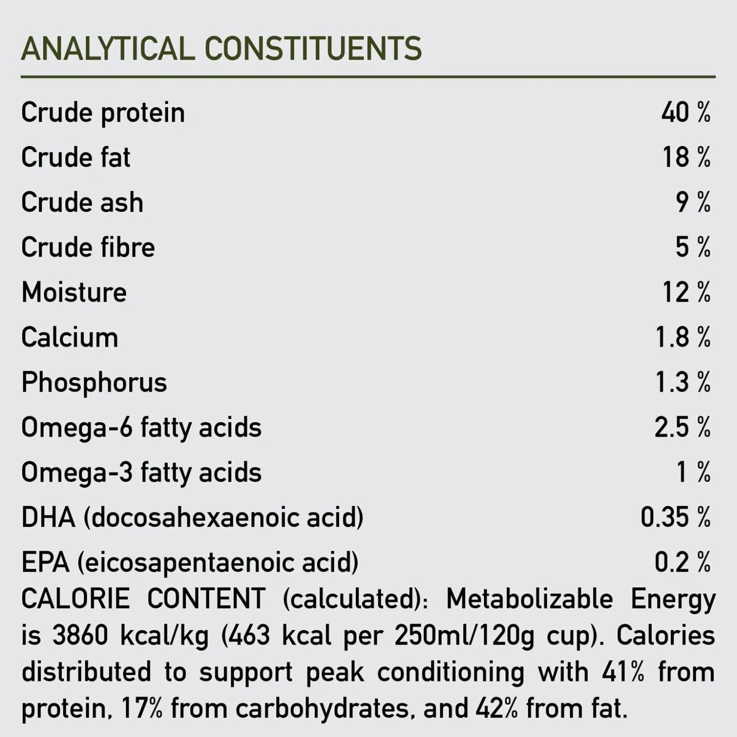 - A unique and delicious recipe with 40% protein from animal sources, supporting peak conditioning and optimal health