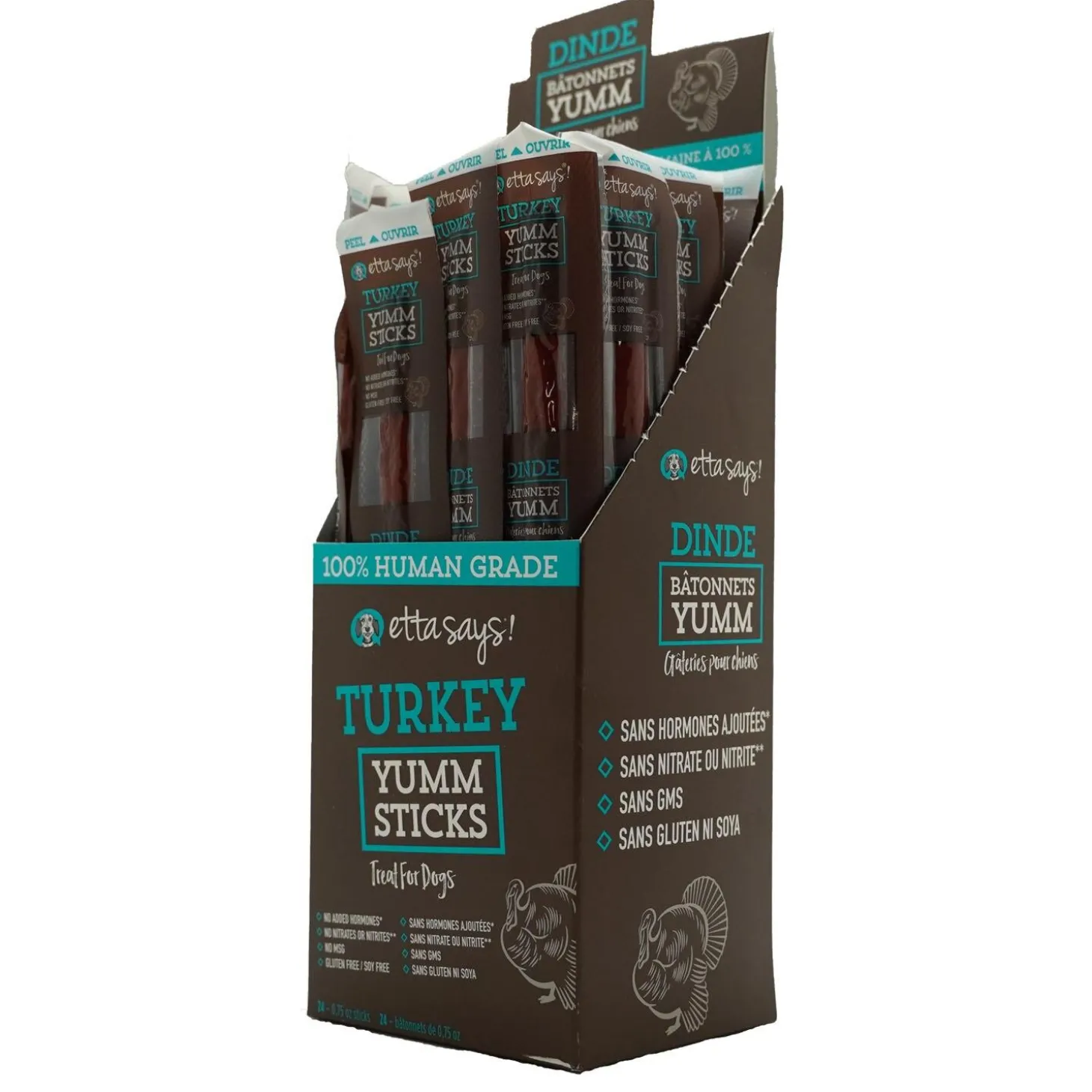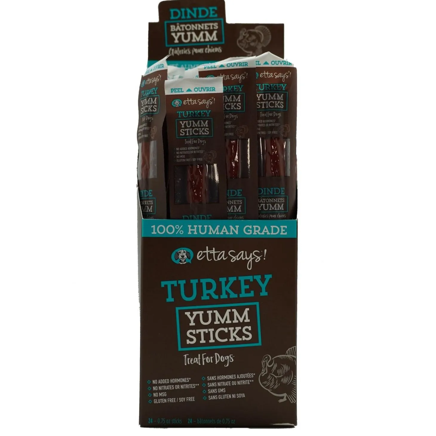 Etta Says! Turkey Yumm Stick Dog Treat is packed with flavour and protein to keep your dog fueled for whatever adventure they go on. These treats are 100% human-grade with high protein and low fat. Each Yumm Stick is individually wrapped for easy, on the go convenience. Keep some handy in your car, bag, or backpack for a treat you can both enjoy. As always these products are proudly made and sourced in the USA.