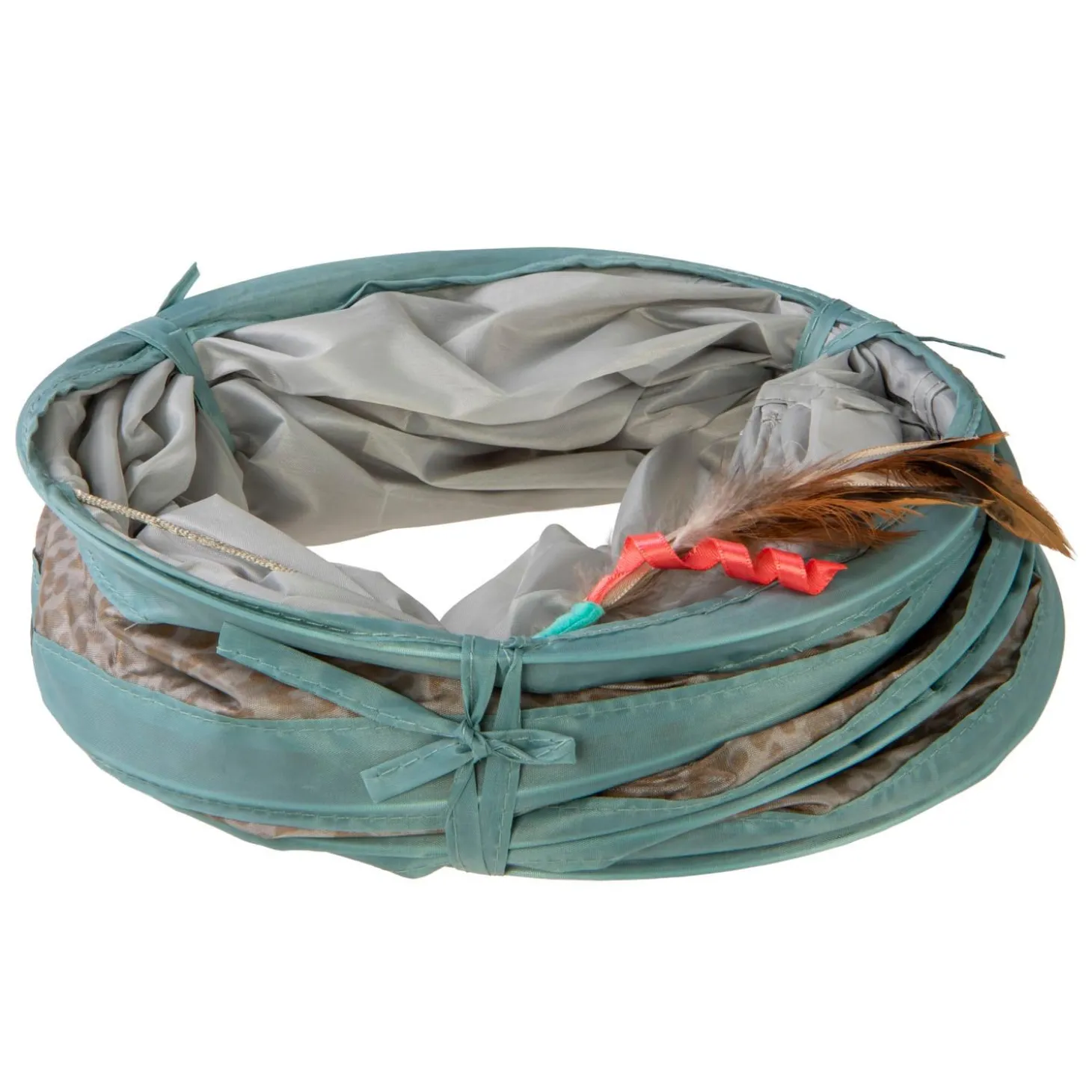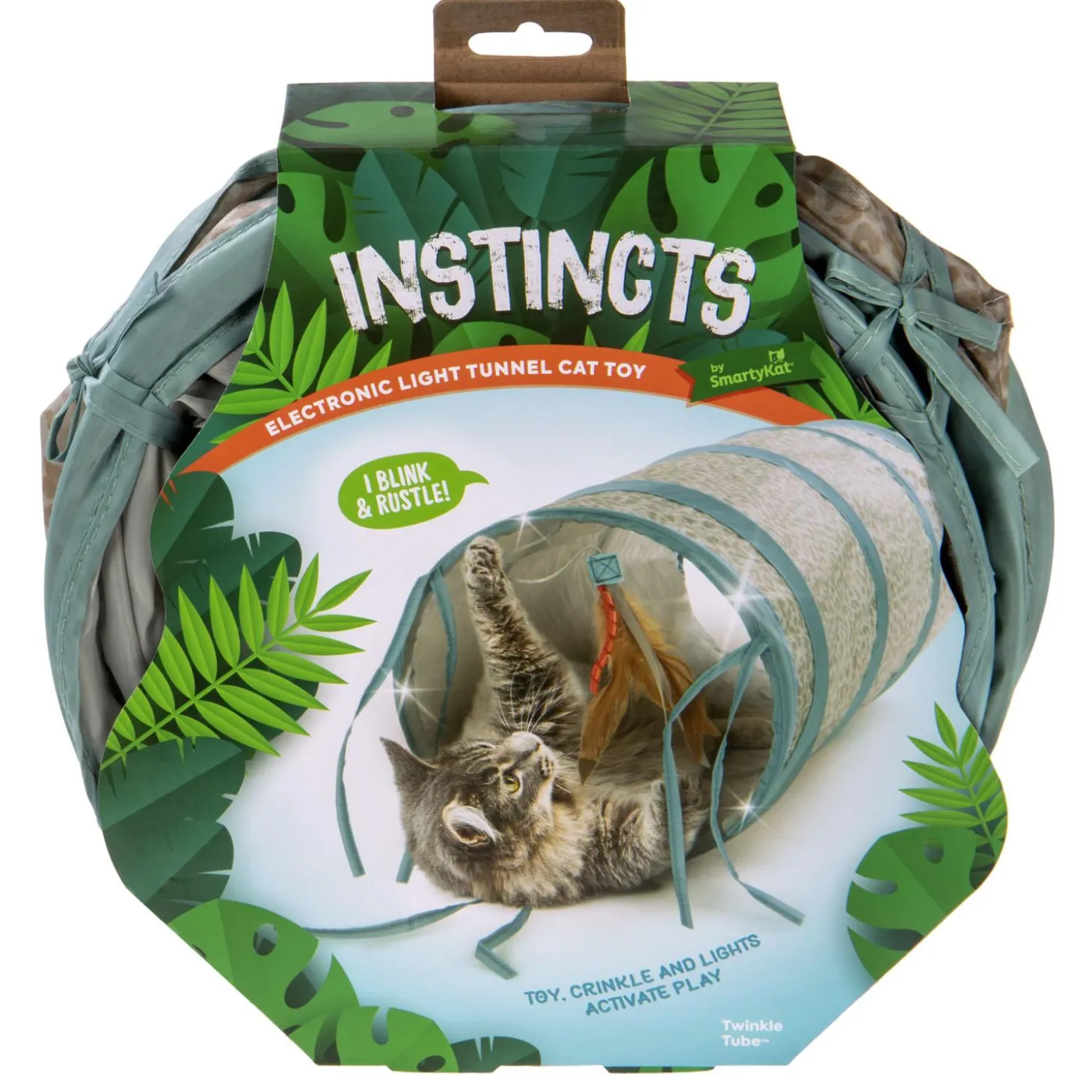 Instincts Twinkle Tube Cat Tunnel is designed to release your cat’s inner instincts with intriguing blinking lights, crinkle fabric and attached dangling teaser toy. Long enough for cats to zoom and race, and big enough for cats to comfortably hide. Ready to play out of packaging, your cat won’t be able to resist exploring and playing with this intriguing tunnel.