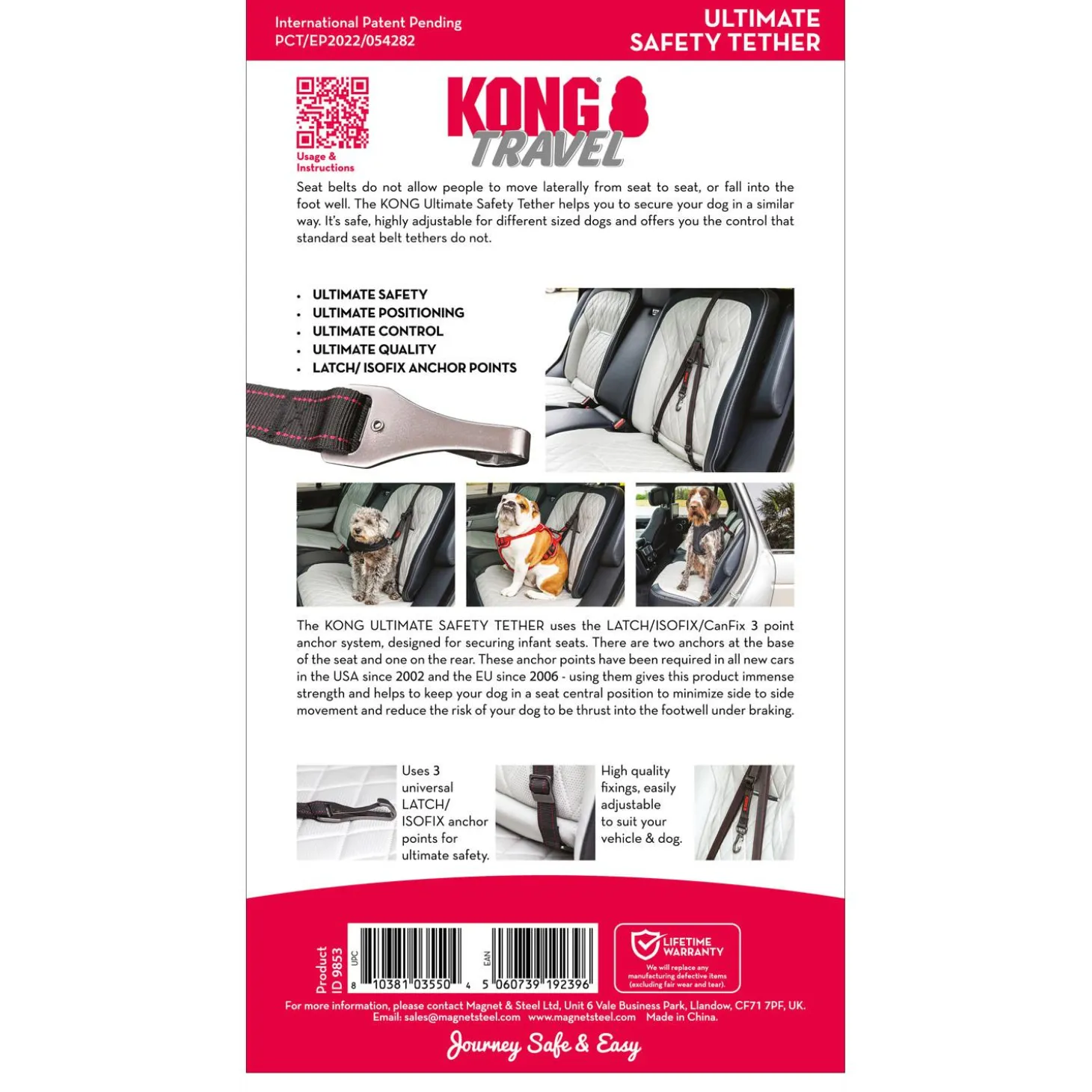 Made to be used with the Latch/Isofix/CanFix three-point anchor system ? which is designed for securing infant seats into place this paw-some doggy tether easily hooks into the two anchors at the base of the seat and the one at the rear. These anchor points along with this tether provide immense strength that helps keep your pet pooch in place with minimized side-to-side movement. Your canine companion will love that it also reduces the risk of injury while braking.