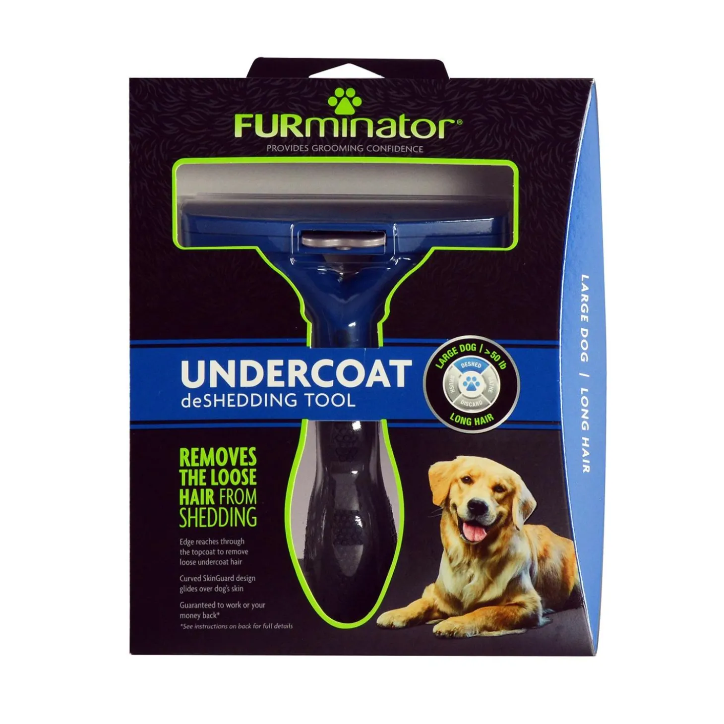 FURminator Undercoat Deshedding Tool for Long-haired Large Dogs is very effective at keeping pet hair in good shape, when used regularly. This tool reaches through top hair and grabs loose undercoat hair without causing damage to top hair. Its curved SkinGuard design glides over the dog’s skin comfortably, never causing distress. Collected hair is easily released at the touch of a button. Comfortable for users, the deshedding tool has a soft ergonomic handle.