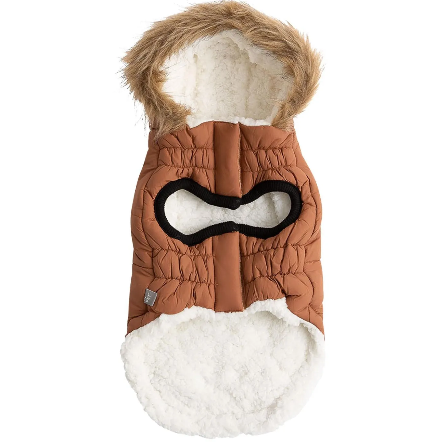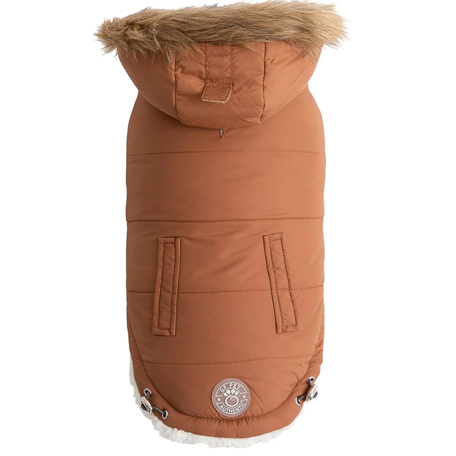 GF Pet Urban Caramel Parka is the perfect mix between classic and functional. With its vegan fur trimmed hood, faux pocket styling and luxurious Sherpa lining, this beautiful coat will keep your dog cozy as if he never got out of bed. Water resistant and super adjustable, with patented Elasto-Fit technology!