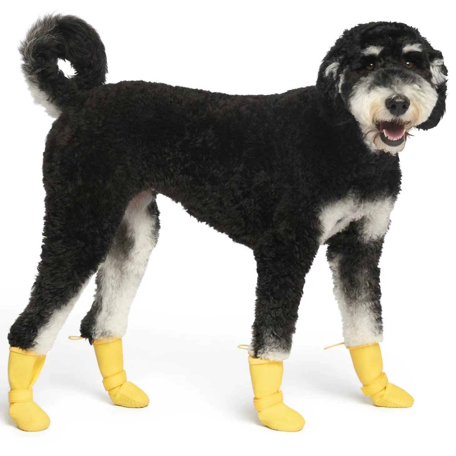 Canada Pooch Waterproof Yellow Rain Boots are the ultimate waterproof dog shoes that are easy to put on, stay on, and keeps dog paws dry and clean.