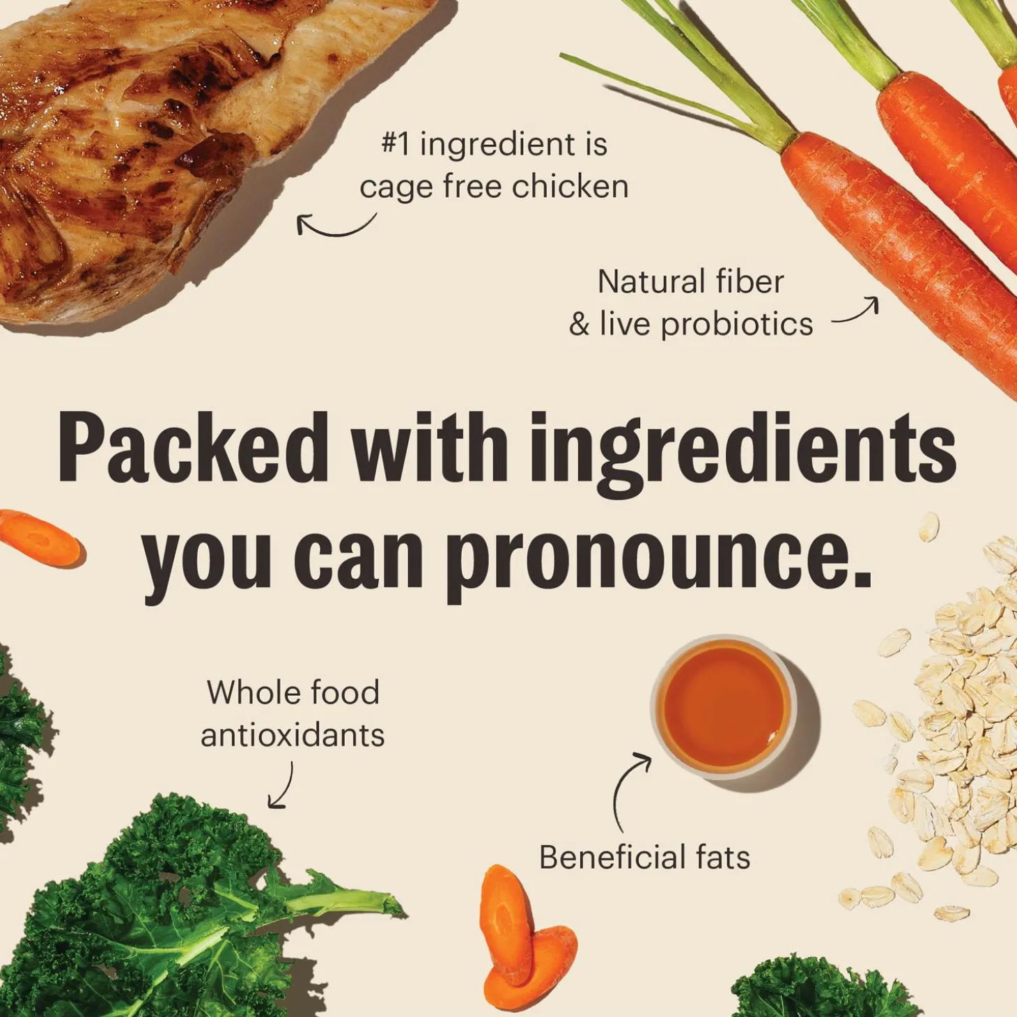 - Crafted with a vet nutritionist to maximize nutrition from real foods that support overall wellness, including beneficial fats, antioxidant-rich veggies and probiotics