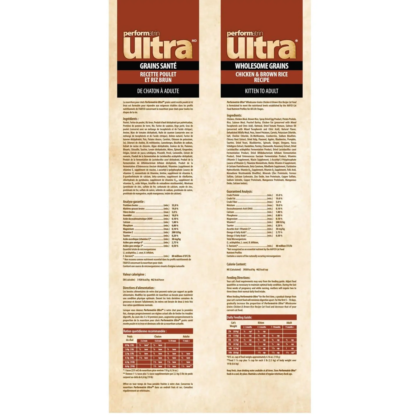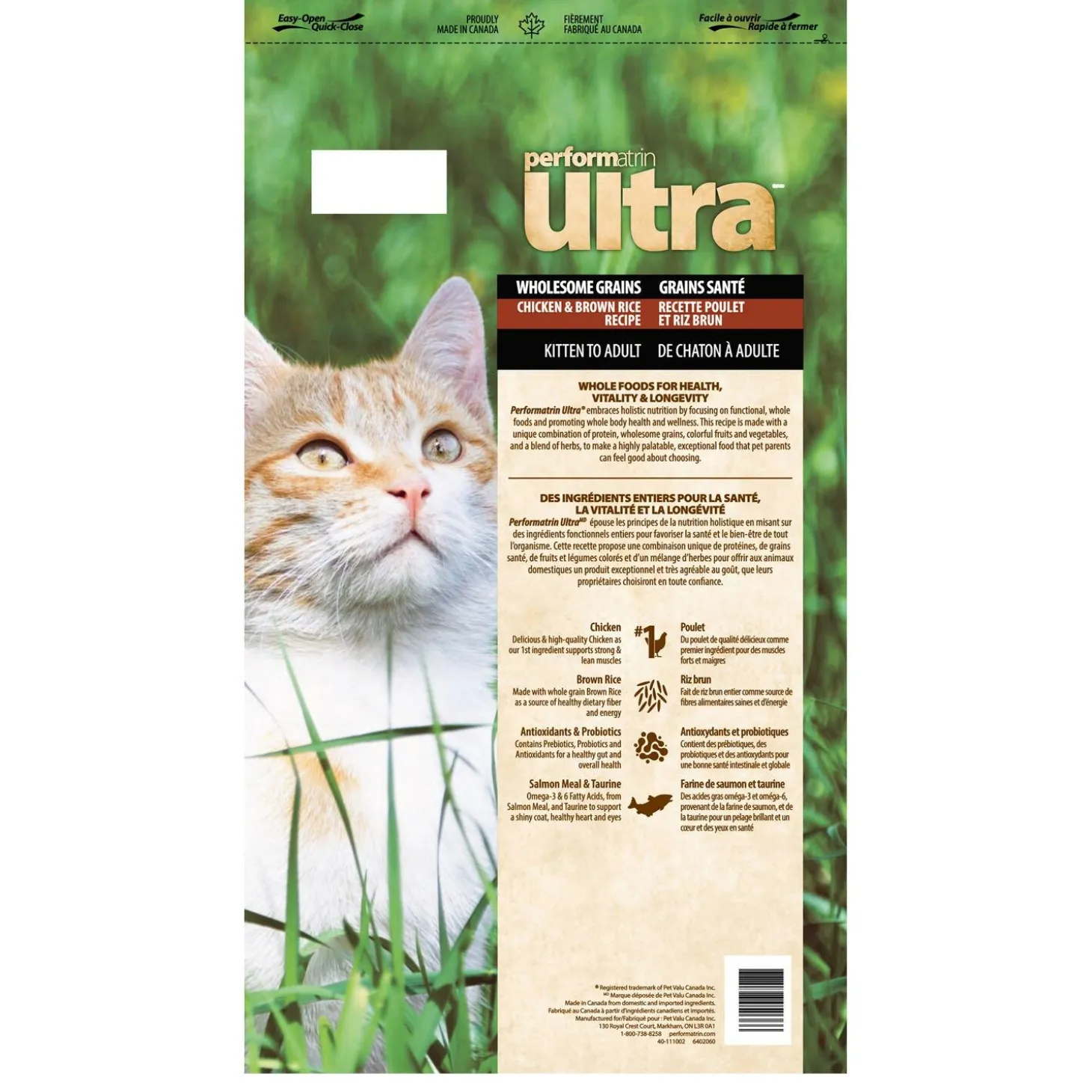 Performatrin Ultra Wholesome Grains Chicken & Brown Rice Recipe Cat Food embraces holistic nutrition, focuses on functional whole foods. Made with high-quality chicken as the first ingredient and whole grain brown rice, providing your cat with strong and lean muscles, healthy dietary fiber, and the nutrition your cat needs to live their best life. This recipe meets your cat’s daily requirements and promotes whole body health and wellness.