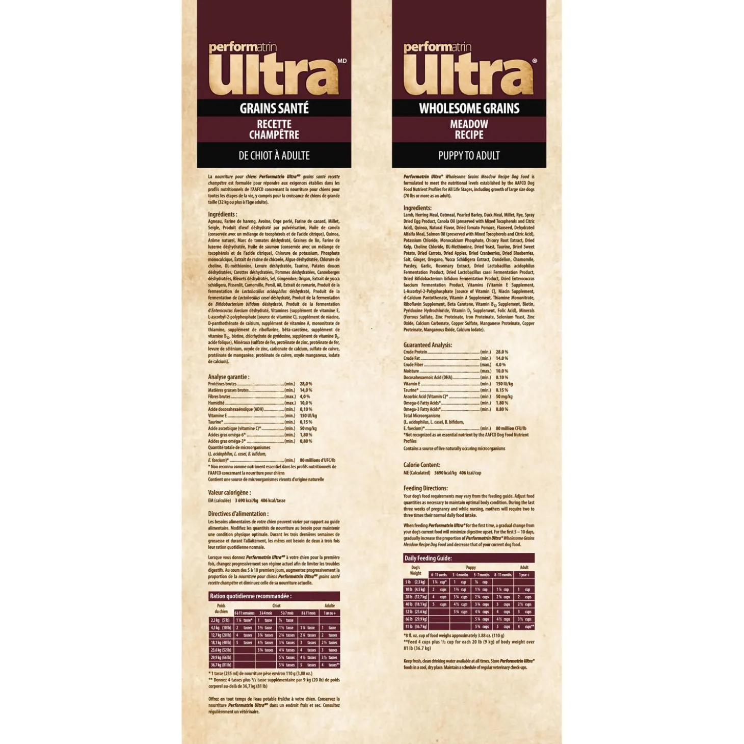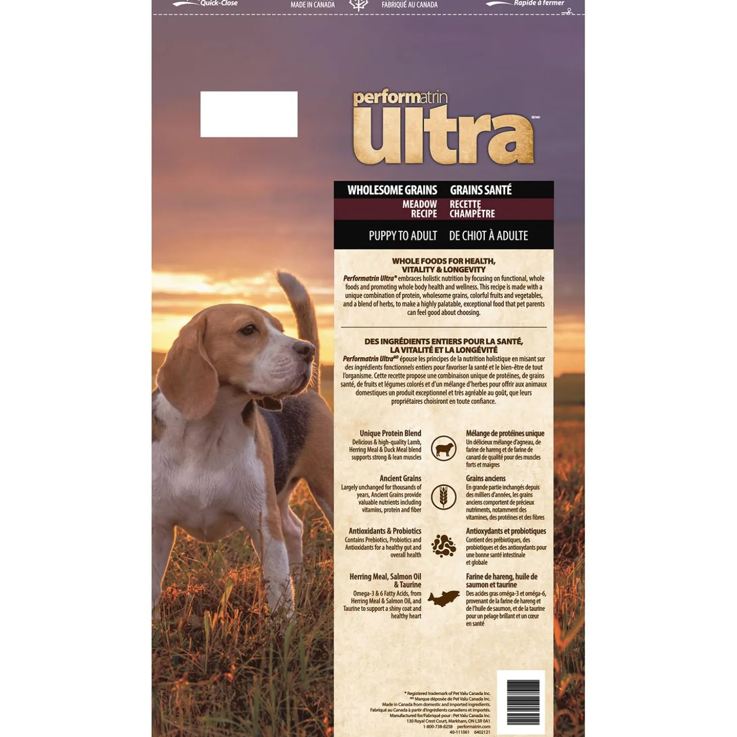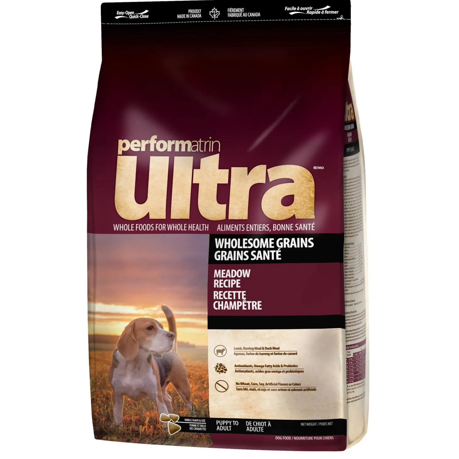 Performatrin Ultra Wholesome Grains Meadow Recipe Dog Food embraces holistic nutrition, focuses on functional whole foods. Made with a unique blend of high-quality lamb, herring meal, and duck meal to support strong and lean muscle, and ancient grains as a good source of healthy dietary fiber and energy. This recipe meets your dog’s daily requirements and promotes whole body health and wellness.