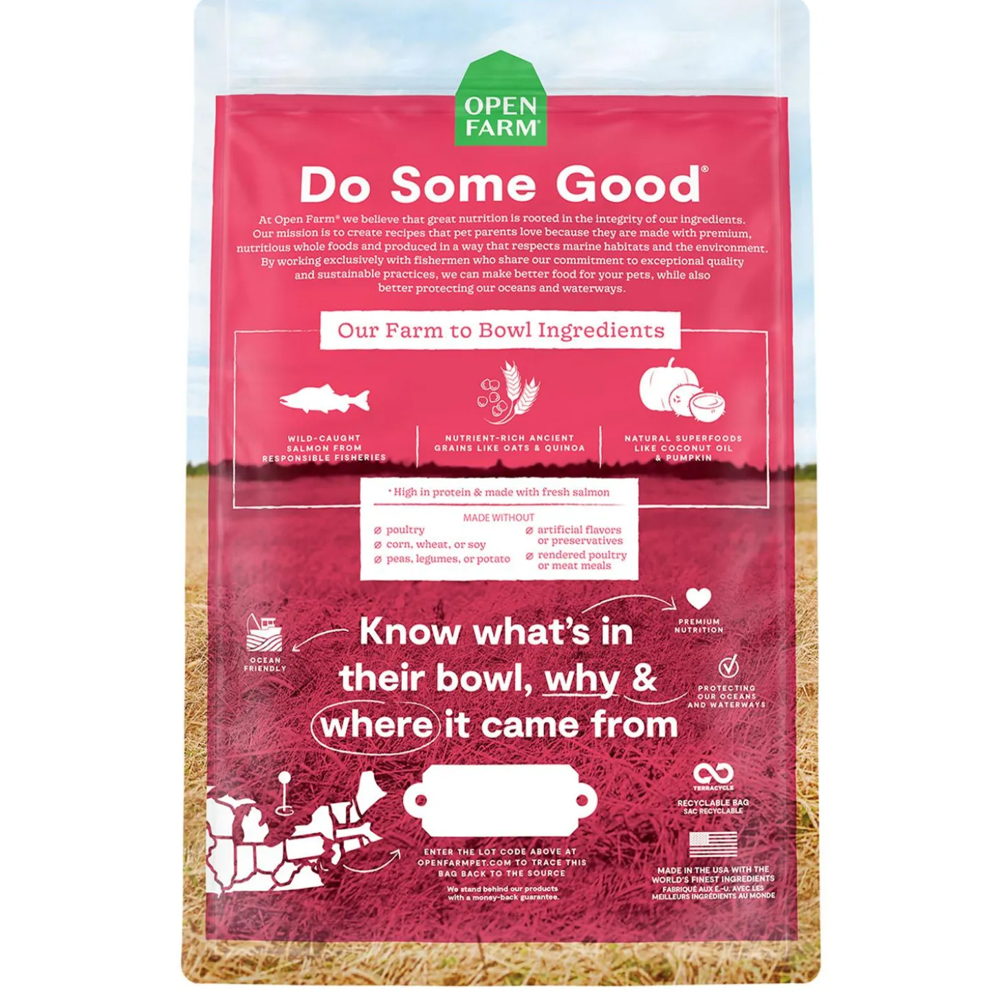 Open Farm Wild-Caught Salmon & Ancient Grains Recipe Adult Dog Food is a premium kibble that is nutrient-dense and packed with omega-3 fatty acids. This is thanks to a mix of wild-caught Ocean Wise approved fresh salmon, superfoods, and ancient grains to support your dog’s overall health. Free of peas, potatoes, corn, wheat, soy, and legumes.