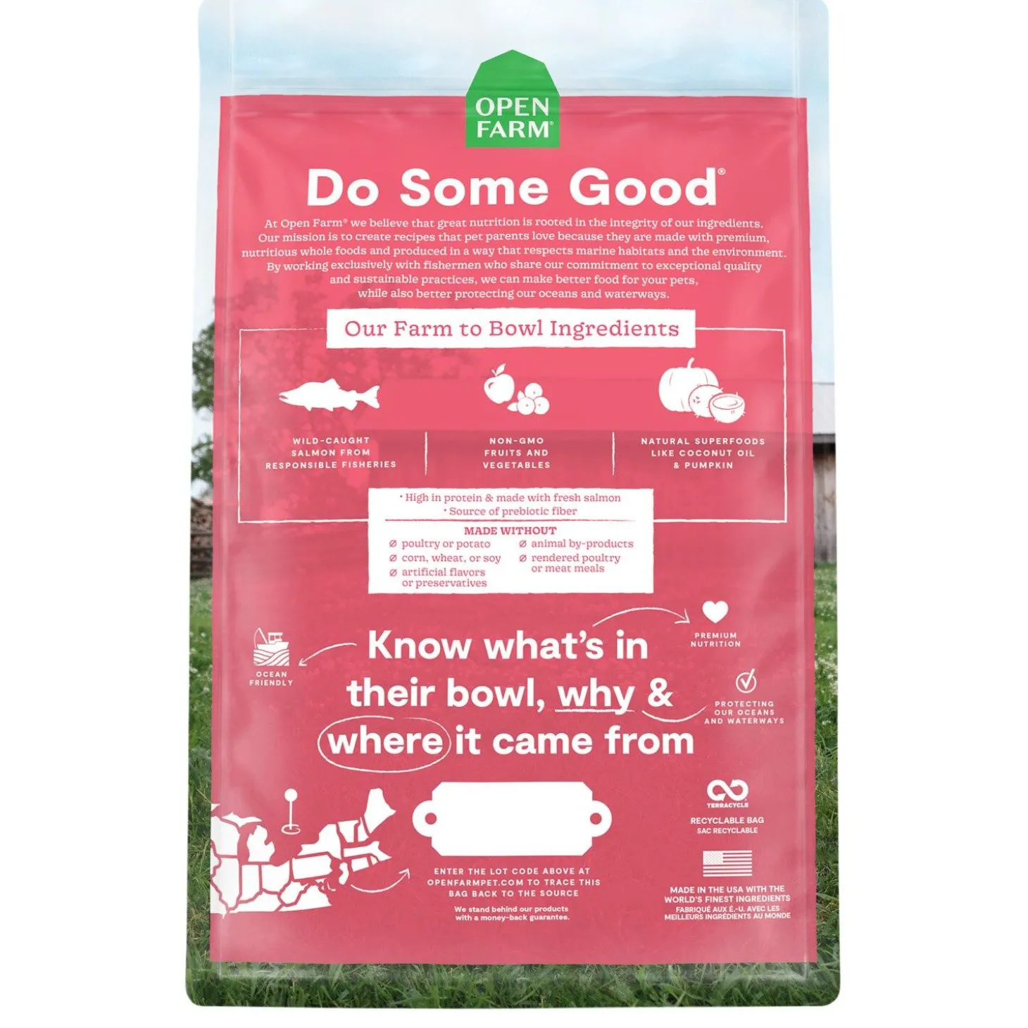Open Farm Wild Caught Salmon Recipe Adult Cat Food is a flavourful fishy kibble that helps support healthy skin and coat and is a terrific source of Omega 3 fatty acids and DHA. This is thanks to a mix of Ocean Wise approved wild-caught salmon and functional ingredients.