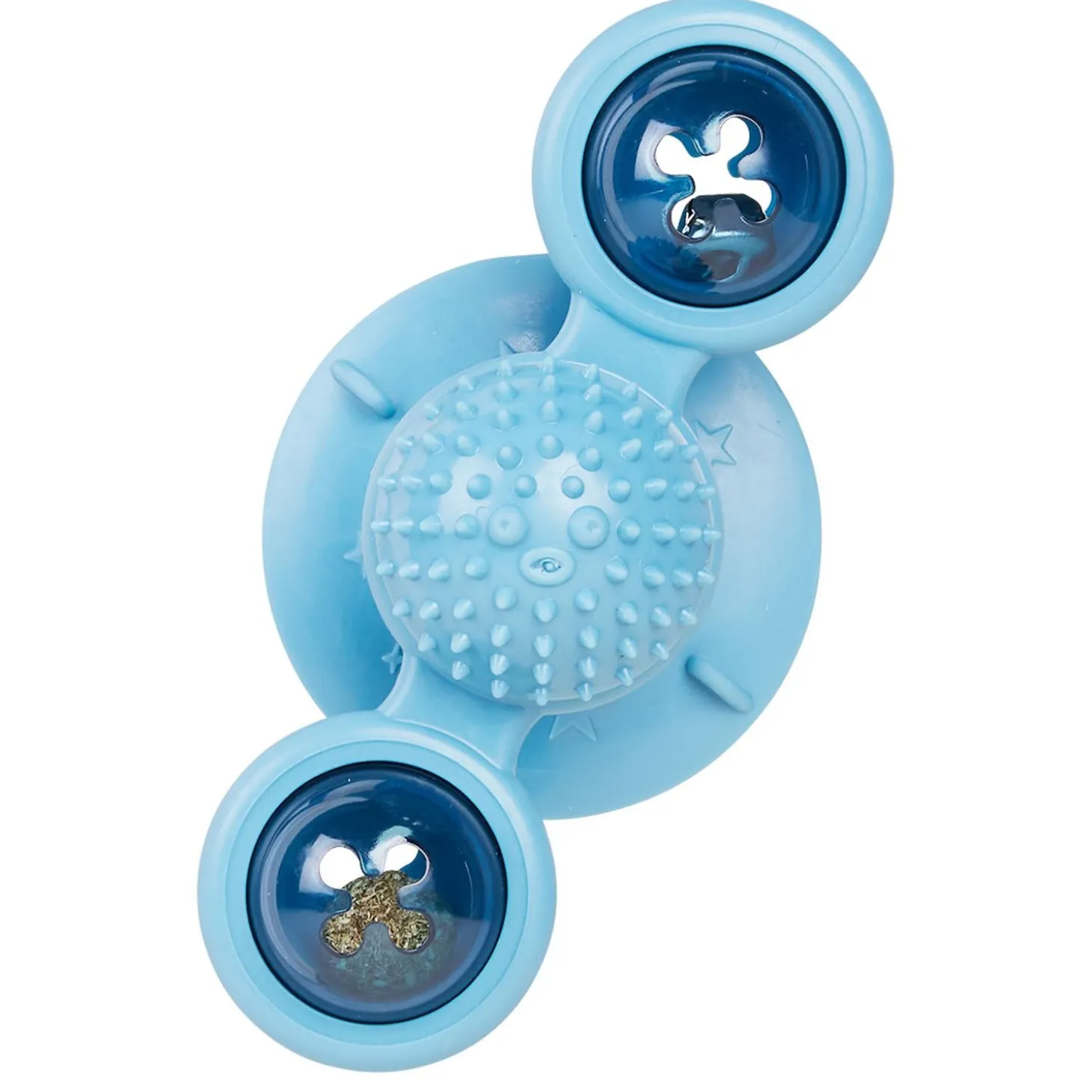 JUMP! Window Spinner Cat Toy securely mounts to any glass or smooth surface. This toy has a rattling ball and catnip which will draw your cats attention for the perfect amount of interactive and multi-sensory play