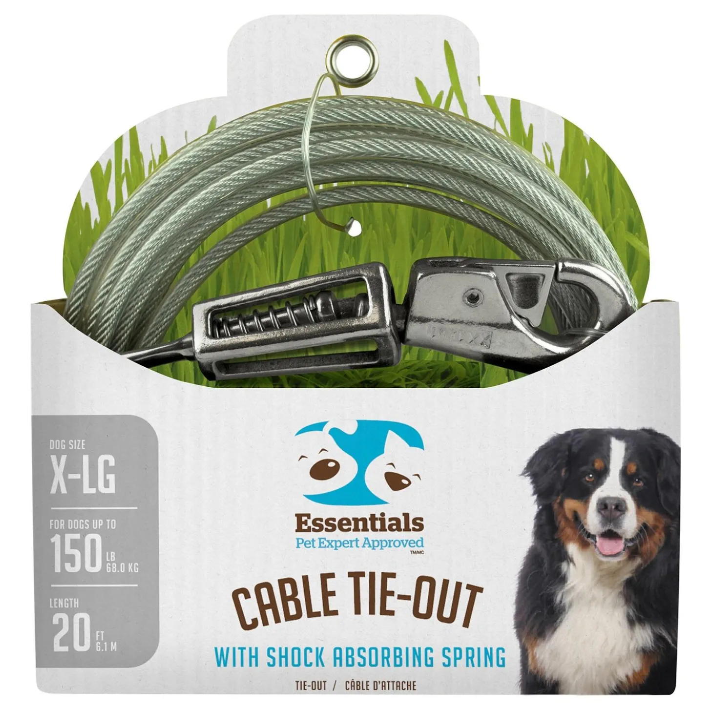 Essentials X-Large Dog Cable Tie-Out with Shock Absorbing Spring is a vinyl coated cable weight rated for extra large dogs up to 150lbs. With its 20 foot long cabling this product is designed with durability for outdoor use.