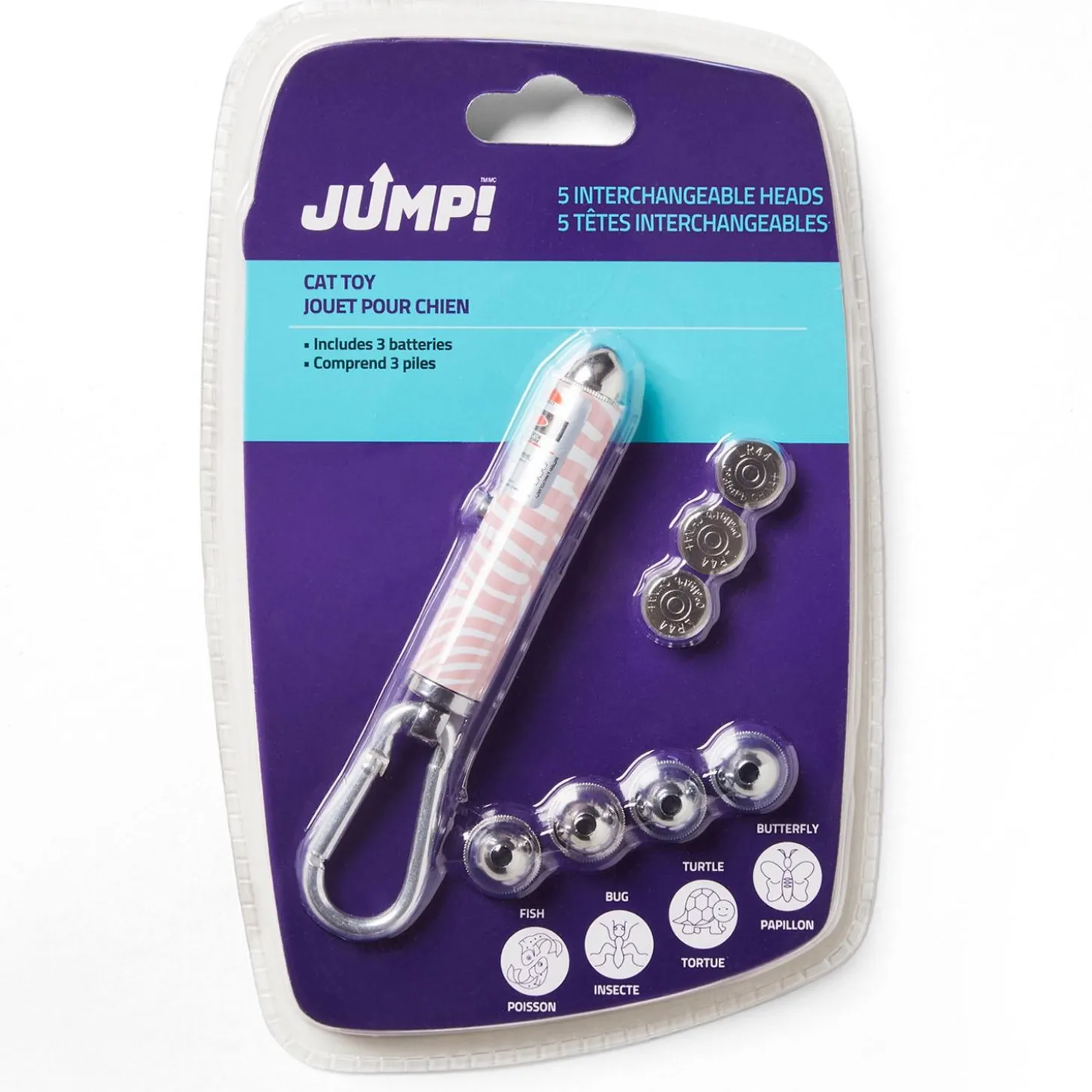 JUMP! 4-in-1 Laser Cat Toy is every cat’s greatest curiosity… the ever elusive red dot! This toy brings you and your kitty together for interactive play. With interchangeable heads making it easy to shake things up a bit by swapping out the dot for a butterfly, turtle, fish, or bug!