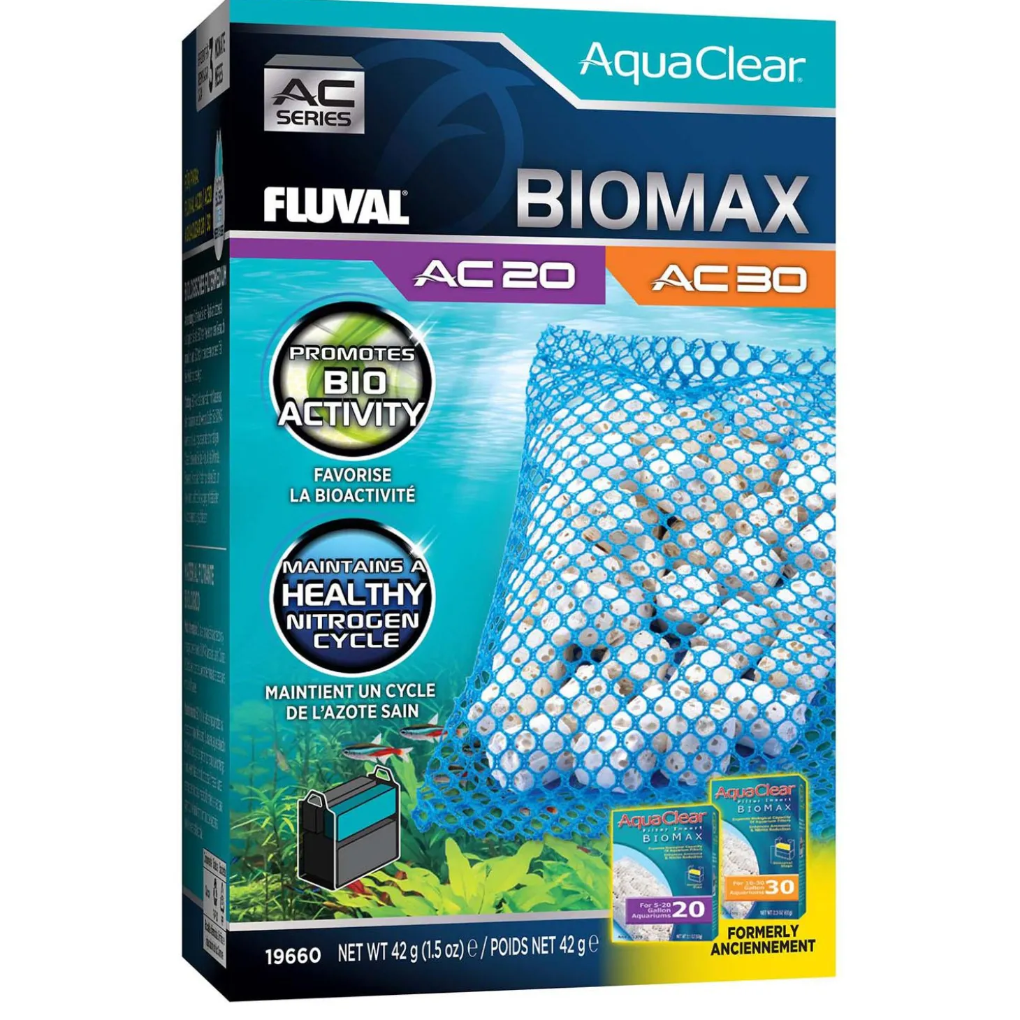 Fluval AquaClear AC 20/30 BioMax Insert features a complex pore system where beneficial bacteria can easily establish and flourish. The media shape is specifically designed to permit even water distribution, which prolongs contact time over a wider area for effective biological filtration.