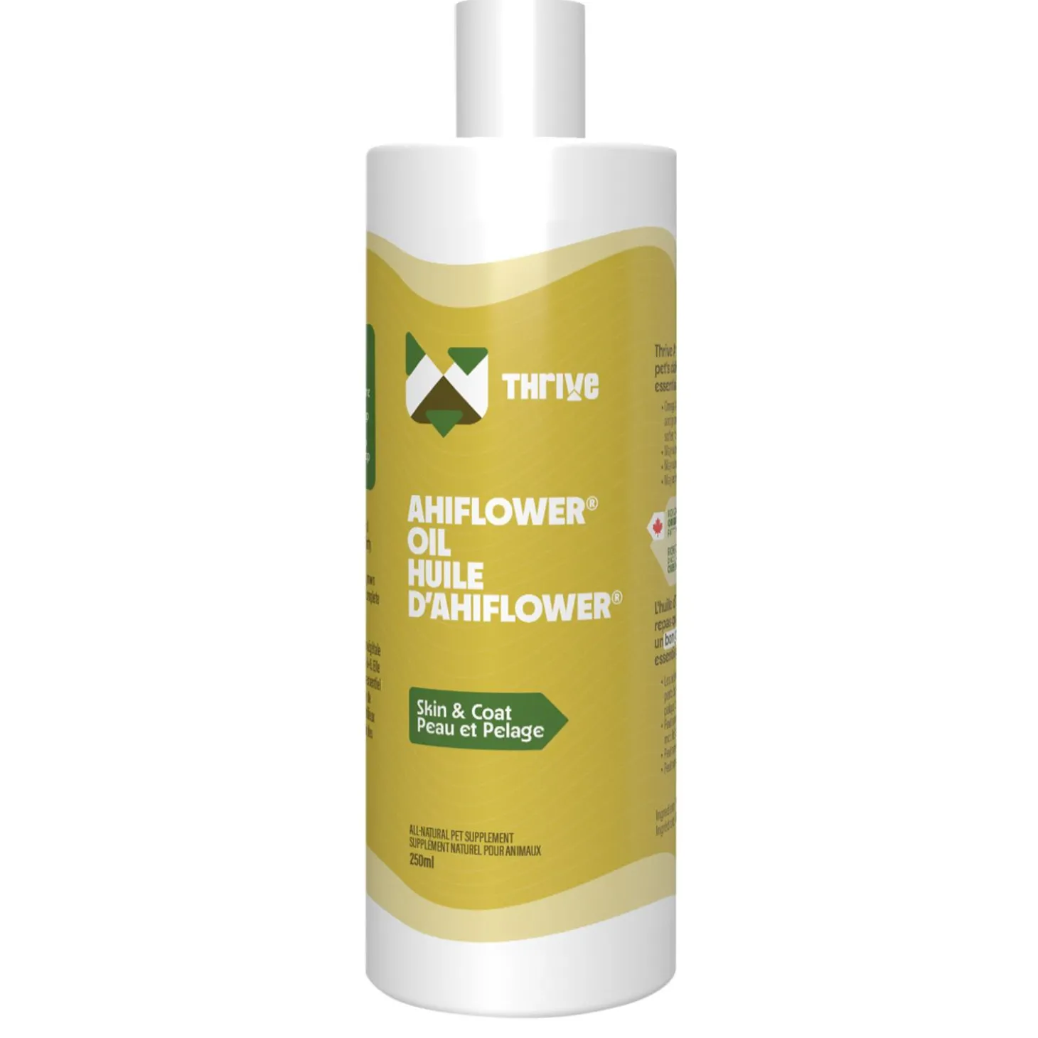 Thrive Ahliflower Oil Dog Supplement is the most biologically advanced, complete, and balanced plant-based source of Omega-3+6 essential fatty acids. Unlike other plant-based sources of omegas, Ahiflower contains SDA, the body’s optimal fatty acid for making its own EPA , DPA and DHA. Also, unlike marine and other plant-based omegas, Ahiflower contains an essential omega-6 GLA. These important distinctions, along with breakthrough science, set Ahiflower apart as the most sustainable source of omegas.