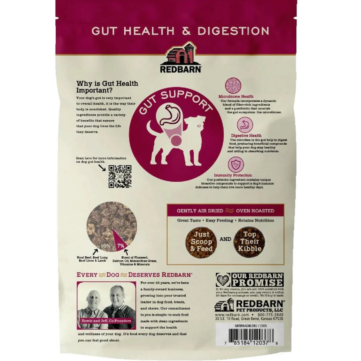 Redbarn Air Dried Gut Health & Digestion Beef & Lamb Recipe Dog Food line now includes three Gut Support recipes that are specially formulated to promote a balanced microbiome. Made with 85% or more Fish, Chicken & Turkey, or Beef & Lamb. An appetizing and nutrient-rich meal time your dog will love! Plus, it’s Grain-Free, Gluten-Free, and Non-GMO to ensure your furry friend gets the best, most wholesome nutrition available. A healthy gut has a significant impact on more than your dog’s digestion – it plays a vital part in their overall health and well-being. It’s how your dog’s body is nourished. Just like humans, dogs are hosts to a community of microorganisms like bacteria, fungi, and parasites. The majority of these microbes live in the gut. It’s important to keep these microbes balanced! The Air Dried Gut Health formulas help keep your dog’s microbiome balanced – and healthy! Beef & Lamb, Chicken & Turkey, and Fish. A mealtime that aids in microbiome health and supports immunity defenses with every morsel