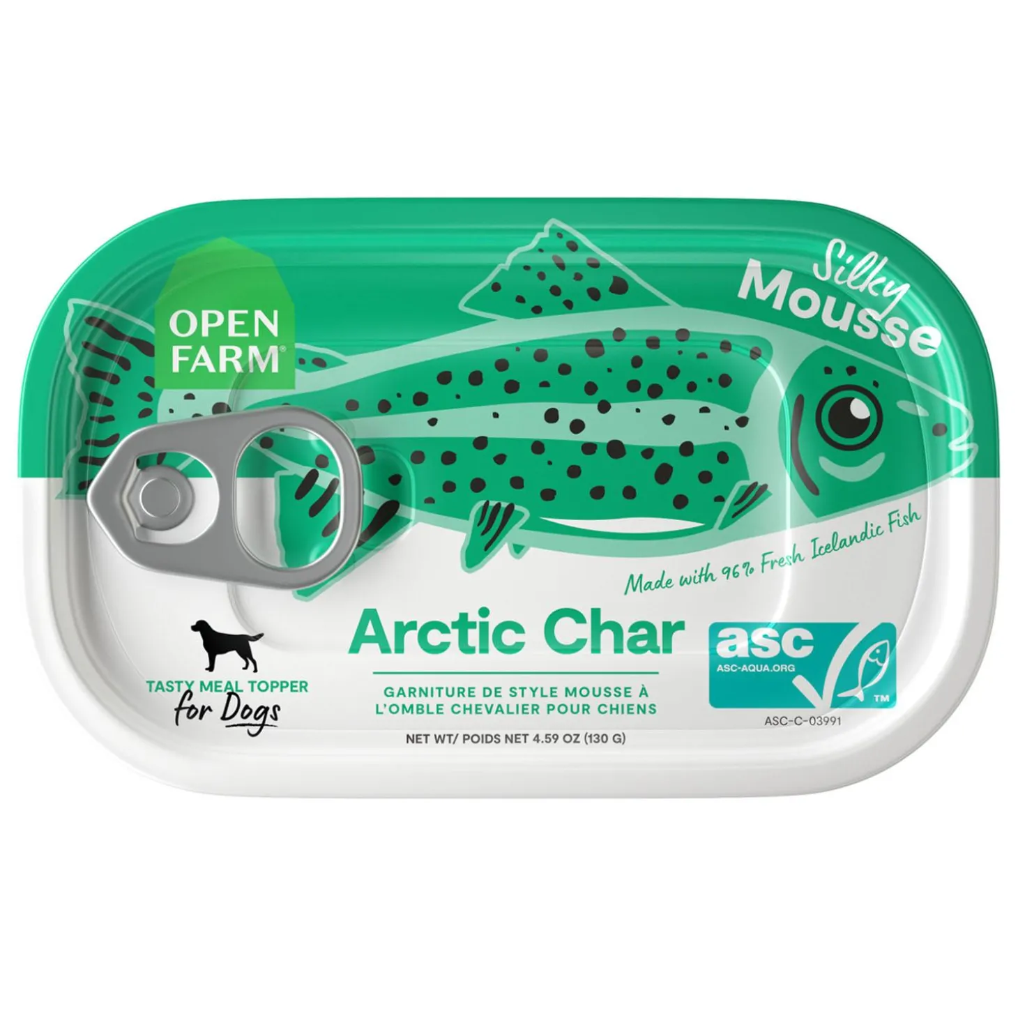Open Farm Arctic Char Mousse Dog Food Topper is an irresistible addition to your dog’s diet, thanks to the 96% fresh Icelandic ASC certified arctic char and a silky mousse texture that your dog will crave! Open Farm’s toppers are made in a human grade facility with 100% human grade ingredients.