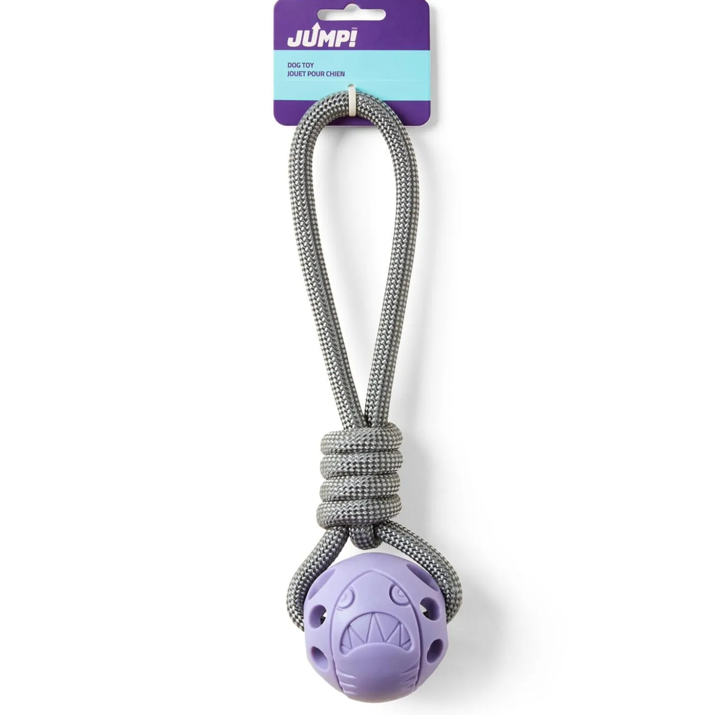 JUMP! Ball on a Rope Purple Dog Toy will get your pup moving. The rope makes throwing farther easier, extending play time wherever your day takes you. Tug and toss at the park, at the beach or in the pool. This toy is durable and made for fun.